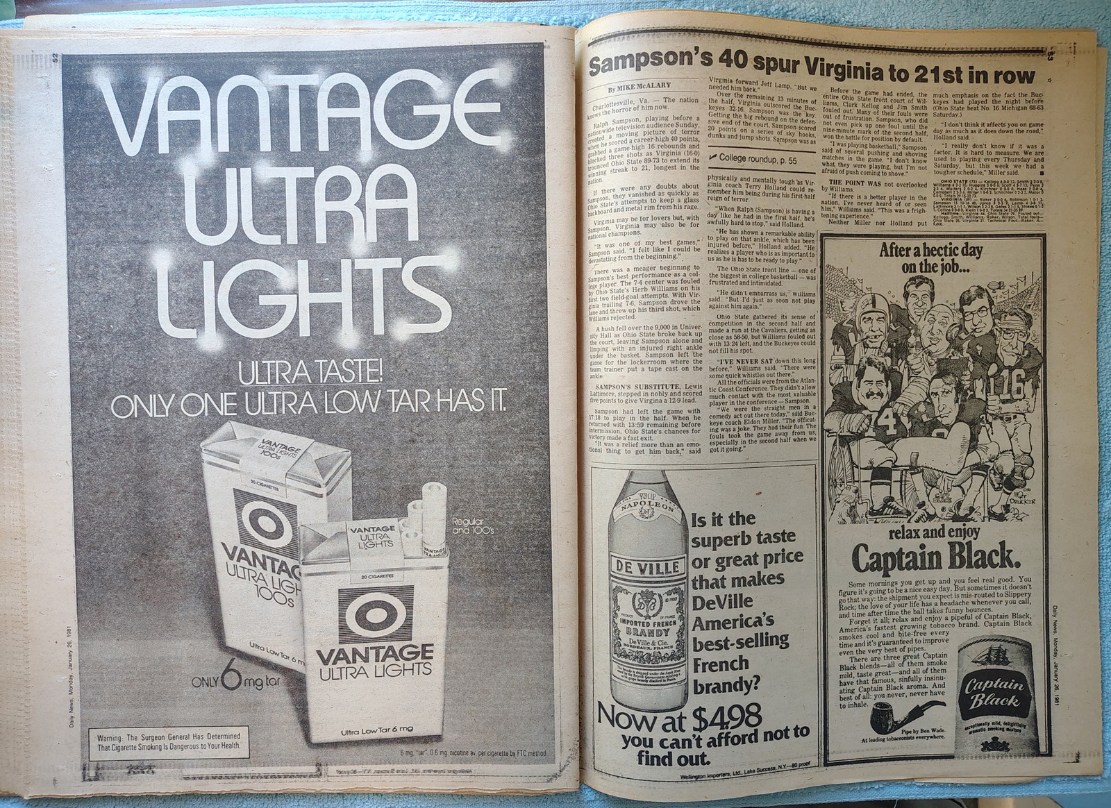 - ‘Sampson’s 40 spur Virginia to 21st in row’ – Ralph Sampson scores his career high of 40 points against Ohio State.