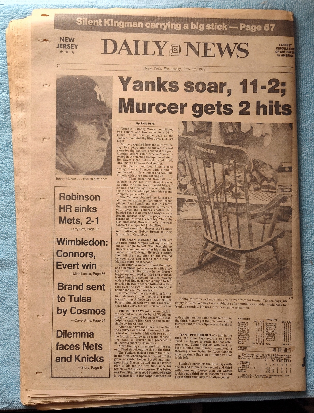 - The back page features a picture of Bobby Murcer and his rocking chair.