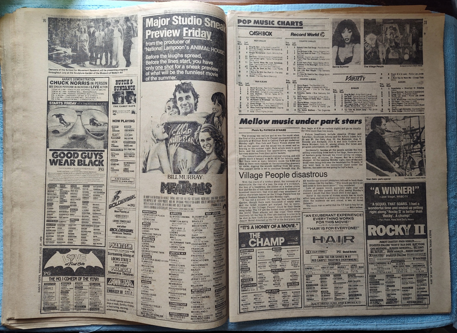 - Movie ads include: A Special Preview of Bill Murray in Meatballs, Alien, Manhattan, The Main Event, Rocky II, Escape From Alcatraz, and more!