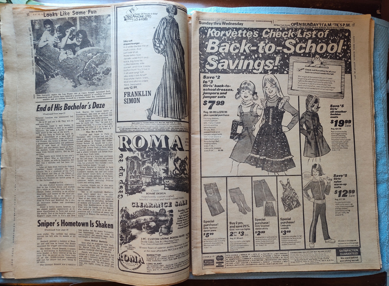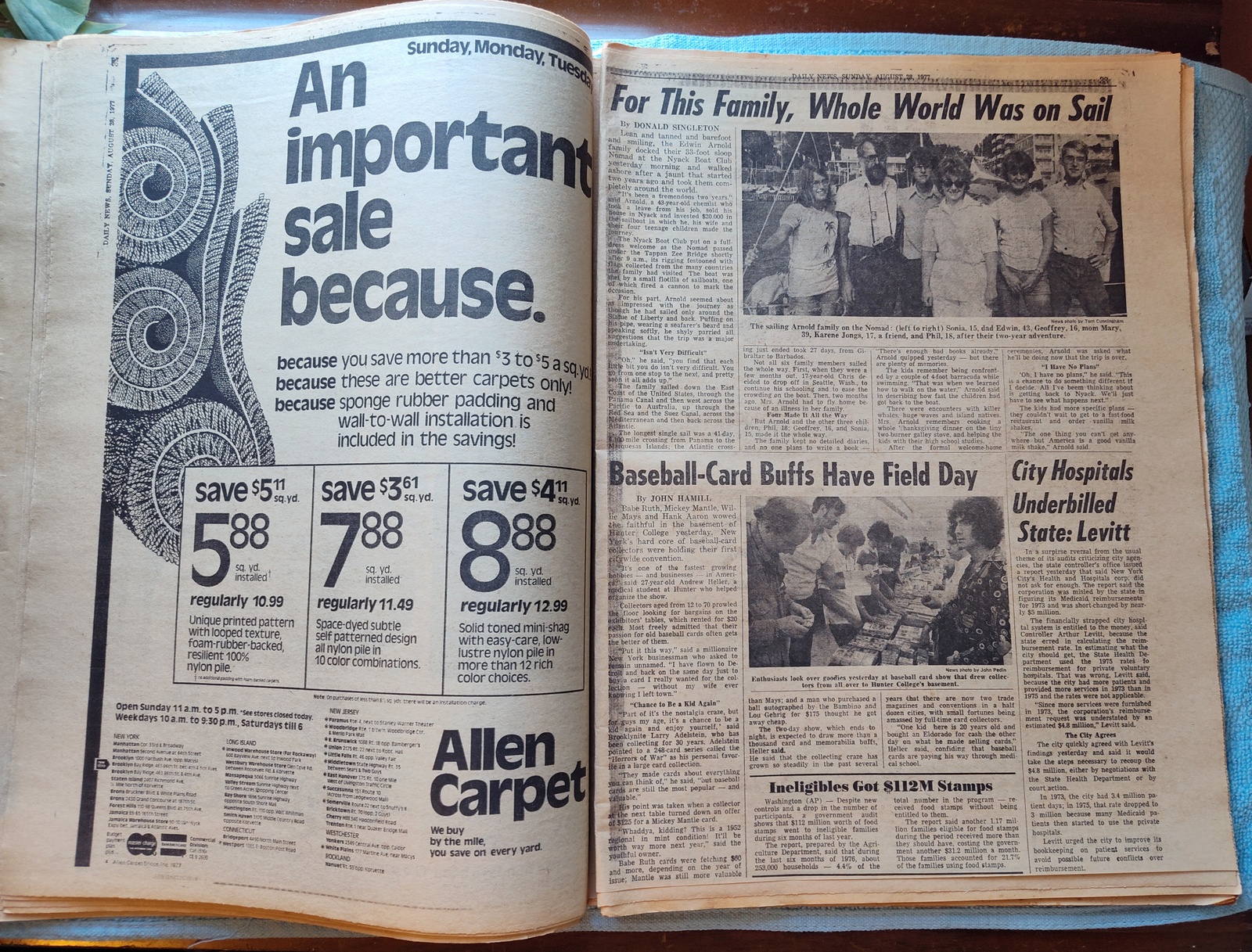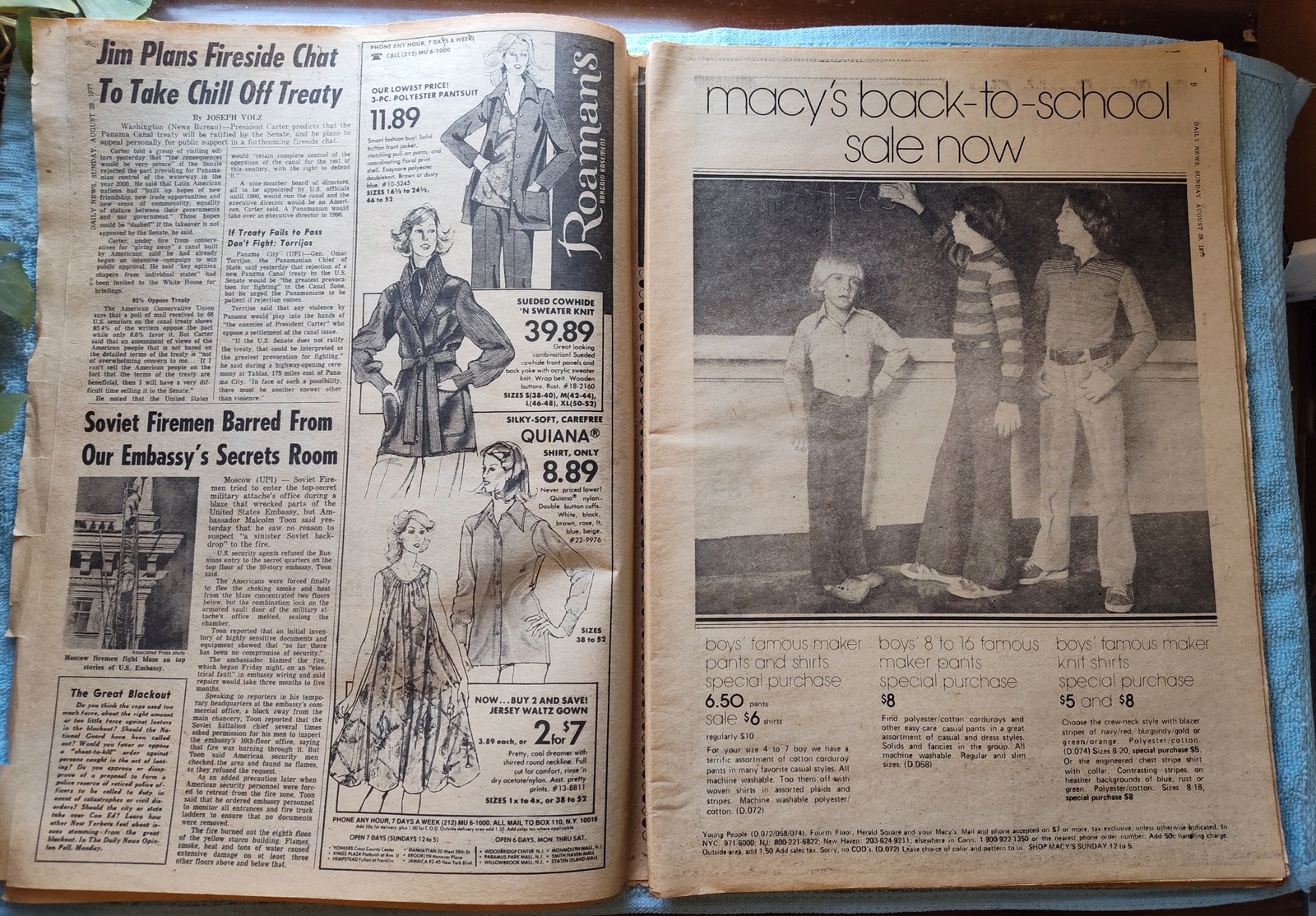 New York Daily News – Monday, August 29, 1977. This old newspaper features on the front page a picture of Secretary of State Cyrus Vance and President Carter. The headline is: ‘Cosmos Win It!’ ‘Prober: Sniper’s Gun Illegal’ ‘ Senator: Gun Bills Need Help’ What you see in the pictures is what you get.