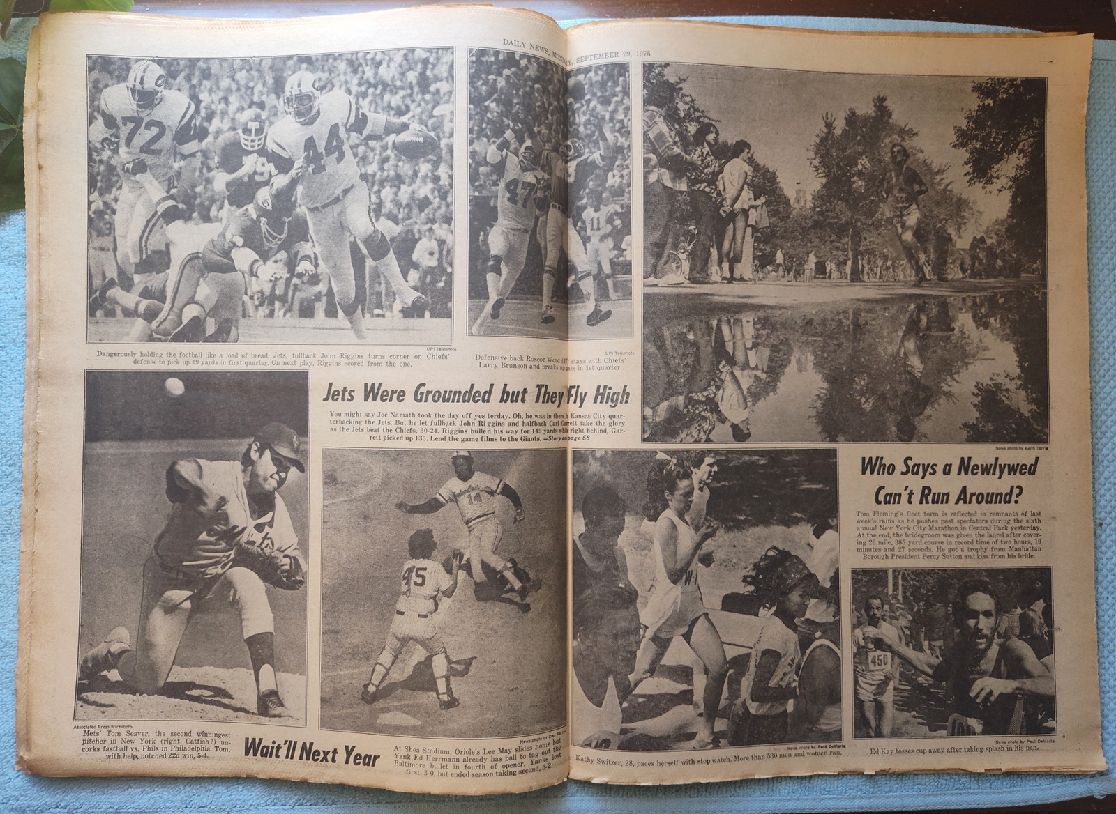 - The centerfold has pictures of Jets’ fullback John Riggins in action against the Chiefs as well as pictures from the 6th annual New York City Marathon and some baseball action with Tom Seaver throwing a pitch.