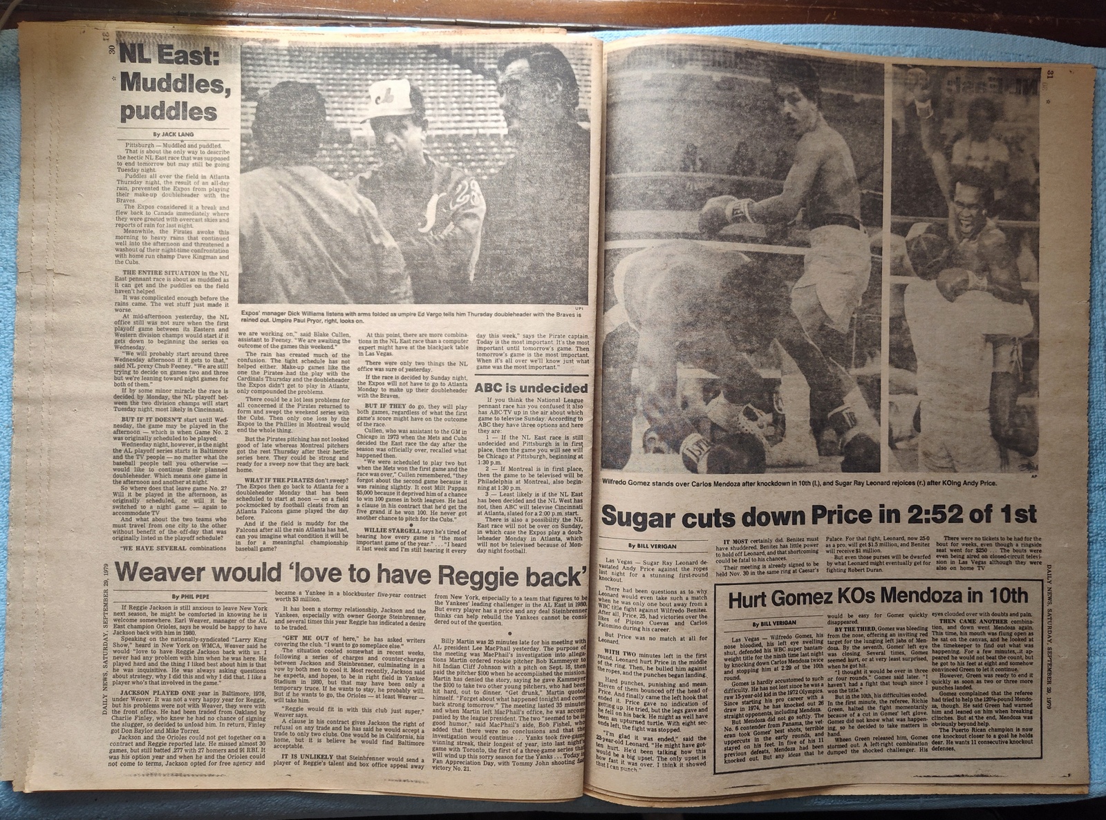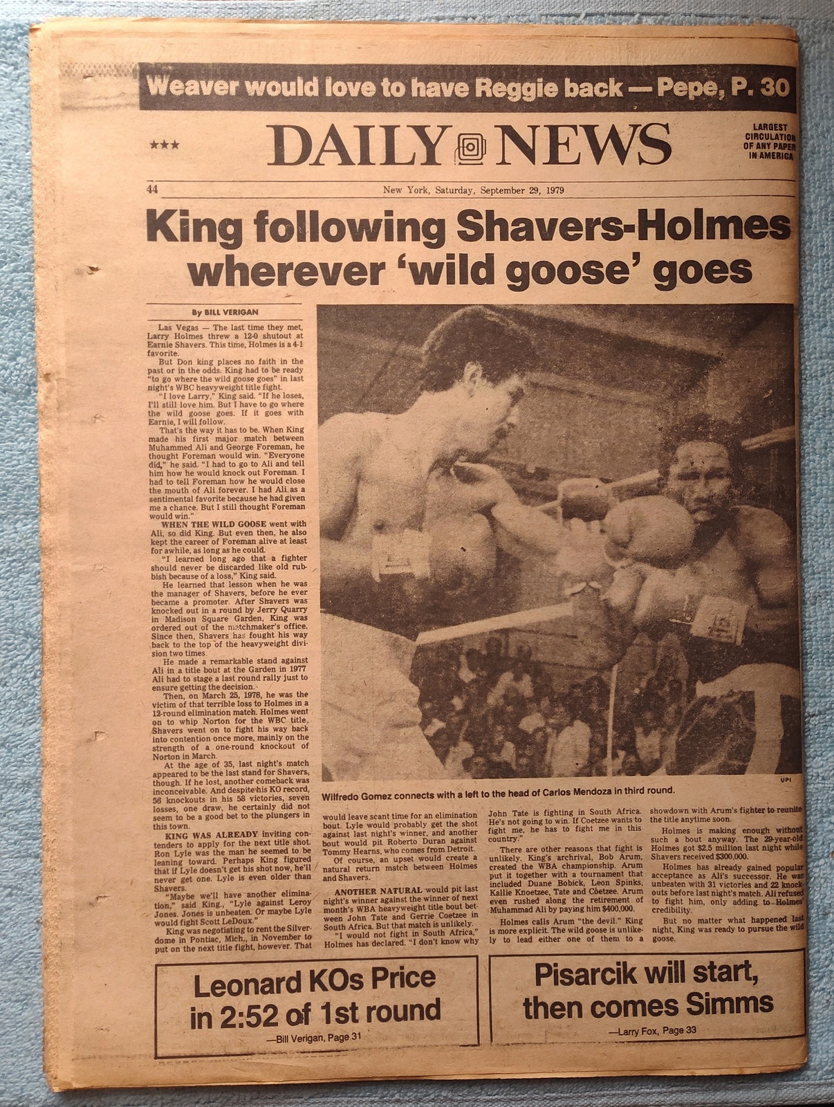 - The back page features a picture of Wilfredo Gomez punching Carlos Mendoza in a boxing match.