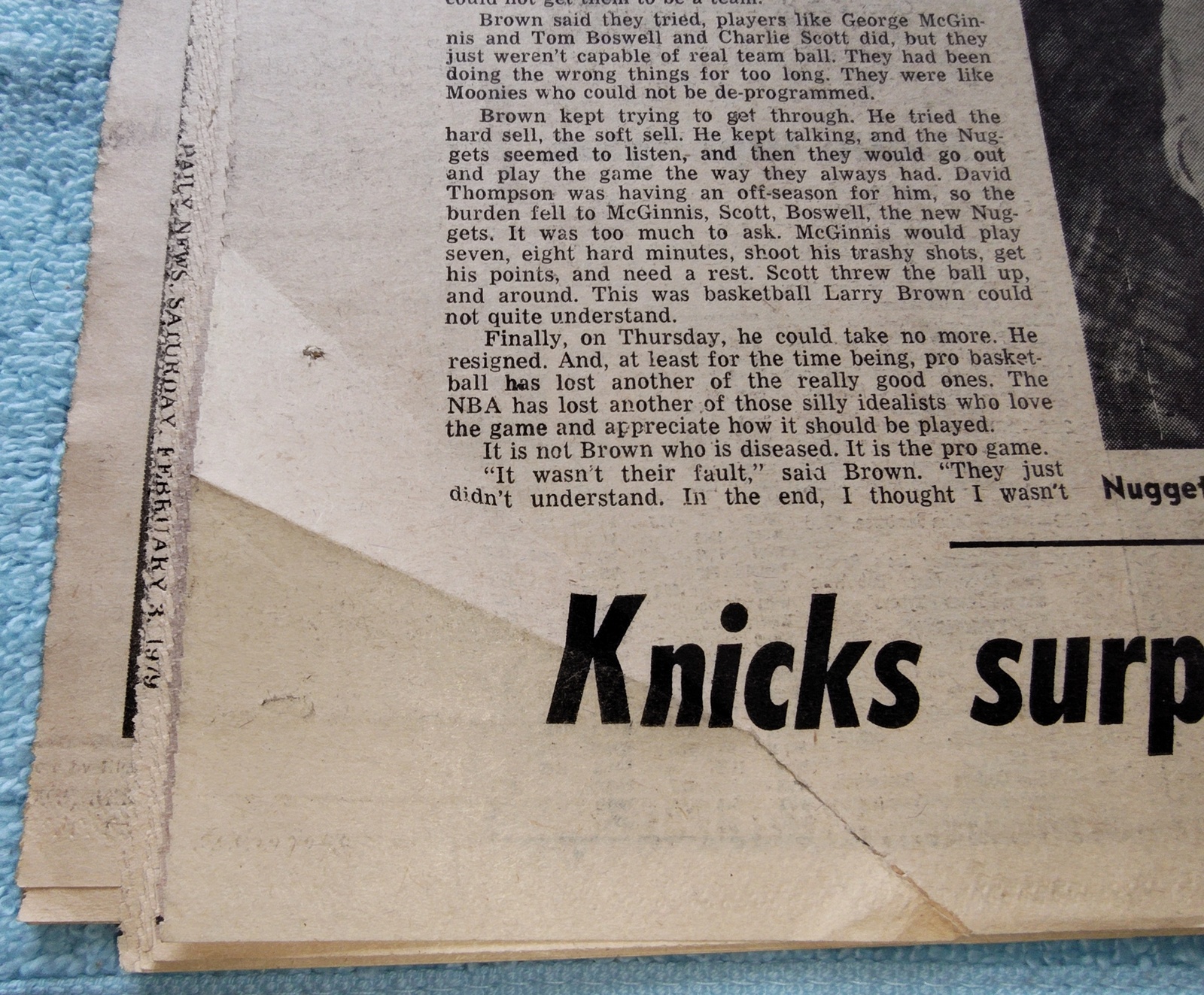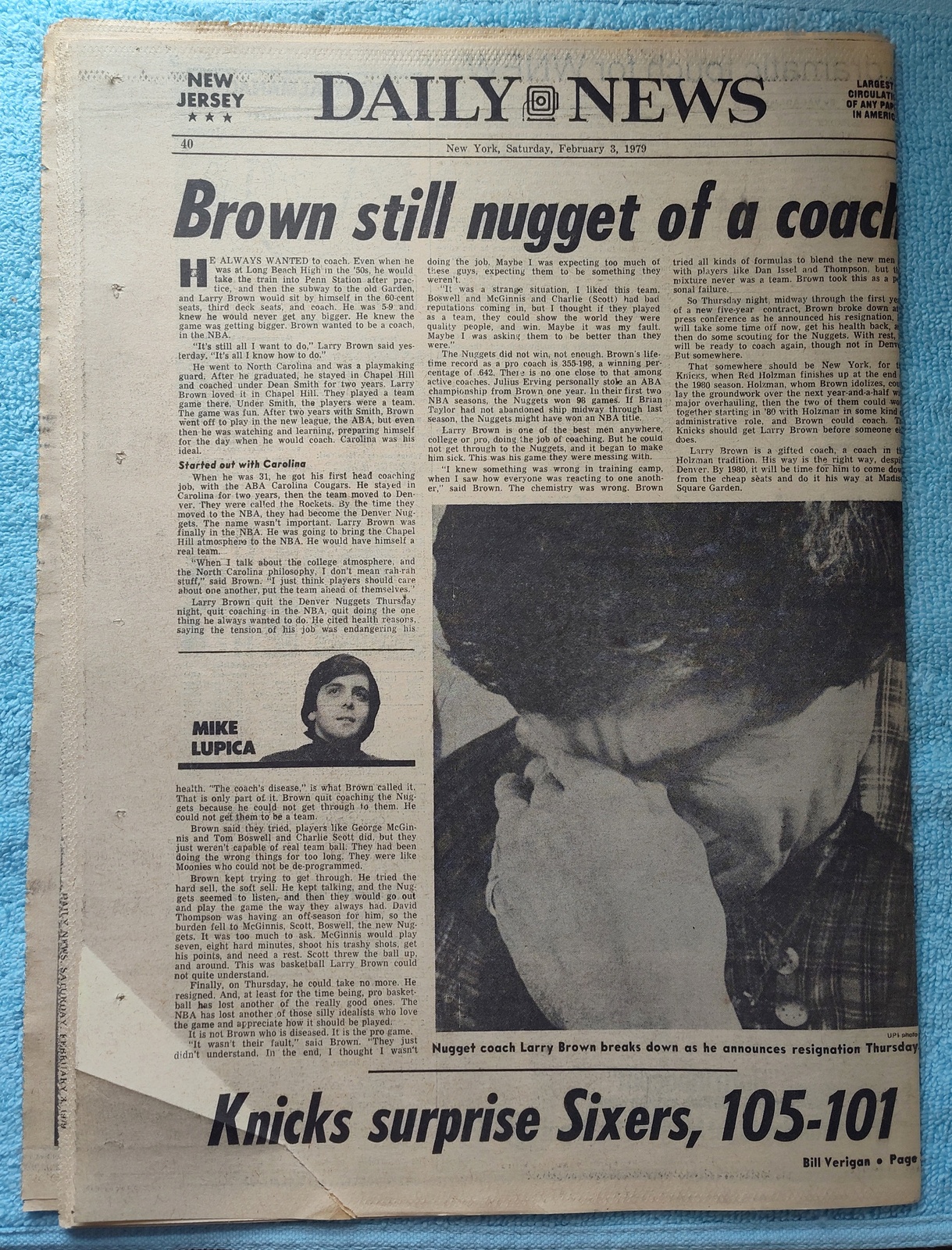 - The back page features a picture of Nugget coach Larry Brown breaking down announcing his resignation.