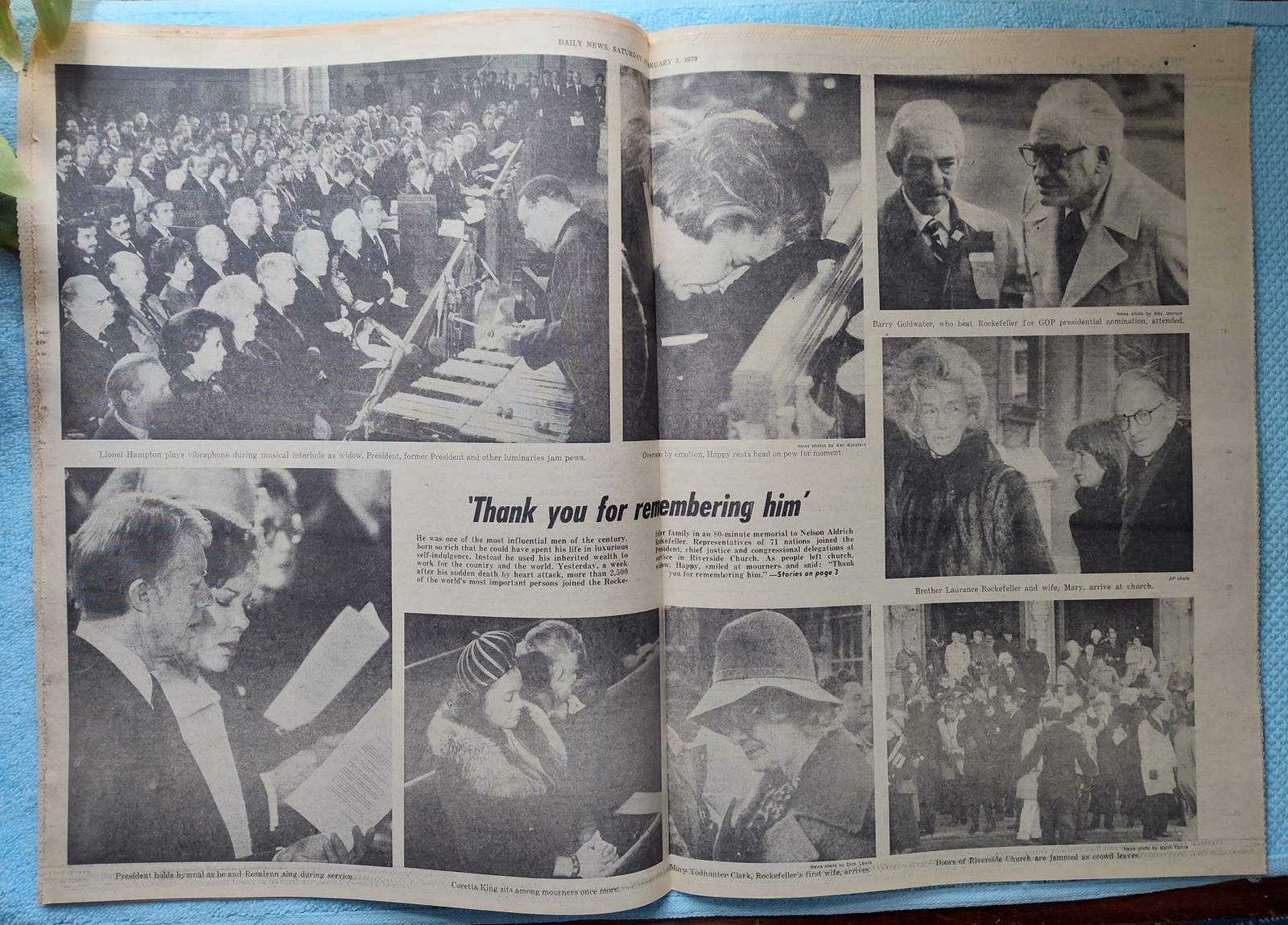 - The centerfold has several pictures of folks attending Nelson Rockefeller’s funeral including President Carter and Rosalynn, Coretta King, Barry Goldwater, and more.