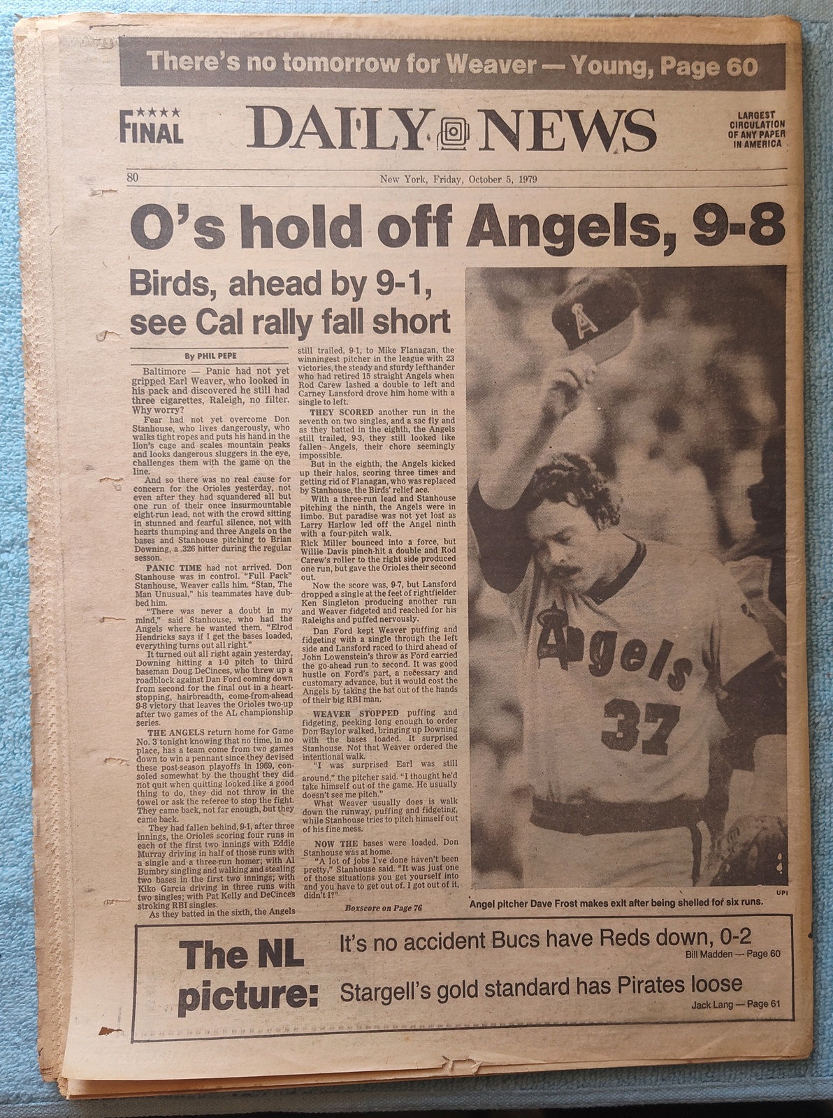 - The back page features a picture of baseball star Dave Frost of the Angels leaving the mound.