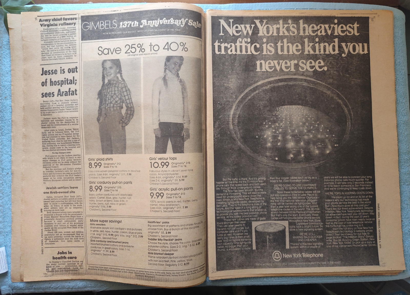 - ‘New York’s heaviest traffic is the kind you never see’ – New York telephone has a full page ad for the 73 million telephone calls in NY