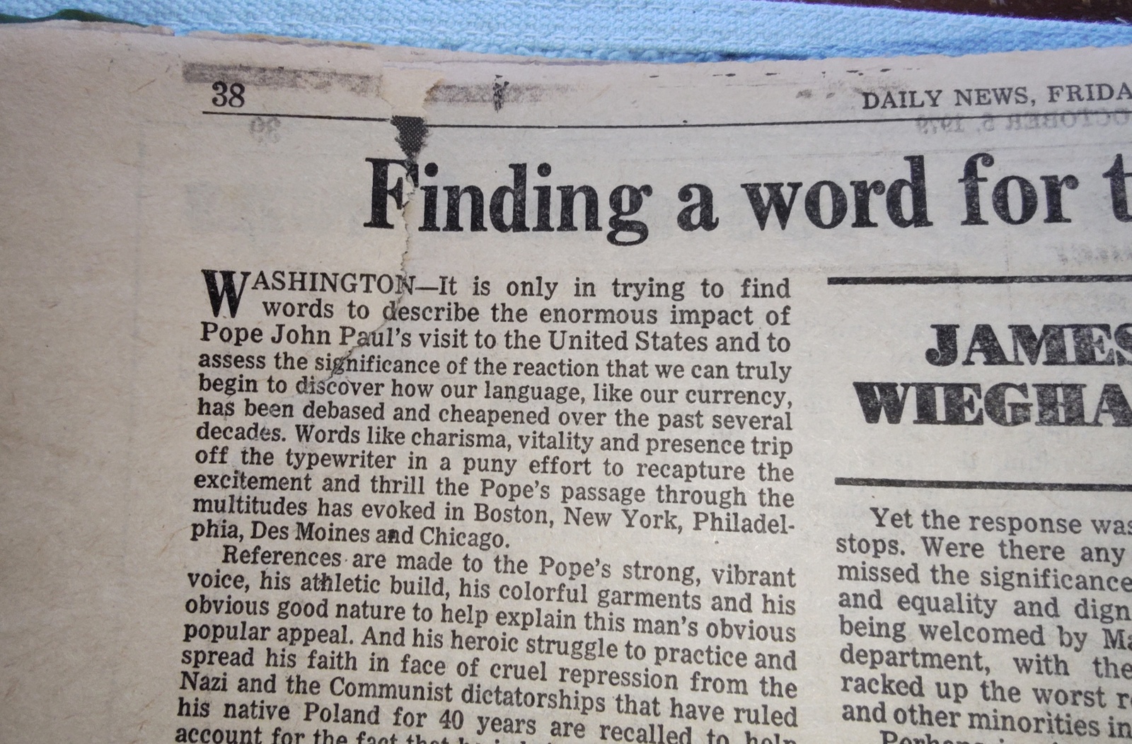 - The centerfold has pictures of Pope John Paul II’s trip to the United States.