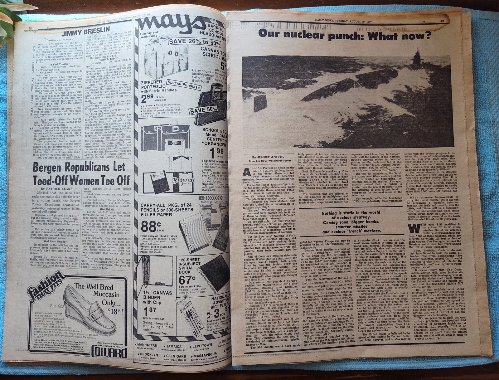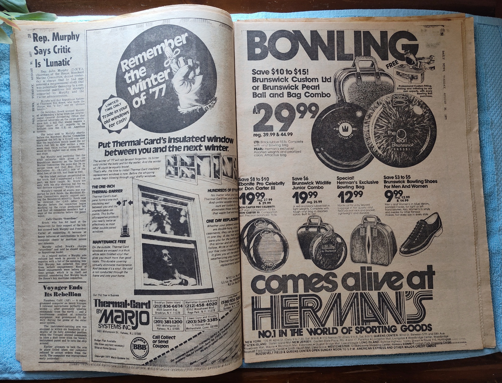 “‘Most Difficult Job,’ Says Sam Psychiatrist” – Son of Sam David Berkowitz’s psychiatrist reports on whether he is fit to stand trial. - Abercrombie & Fitch has sleeping bags for $39.95