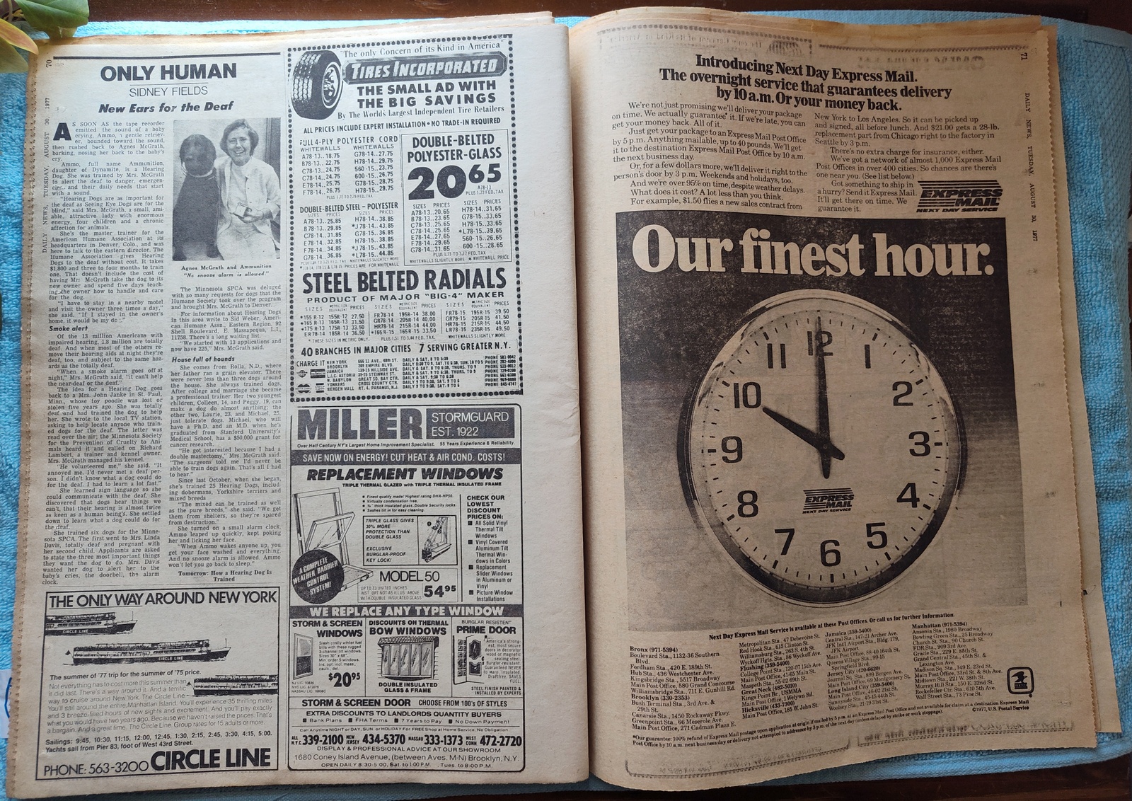 - A full page ad from the USPS advertising the new Express Mail Service – ‘$1.50 flies a new sales contract from New York to Los Angeles’