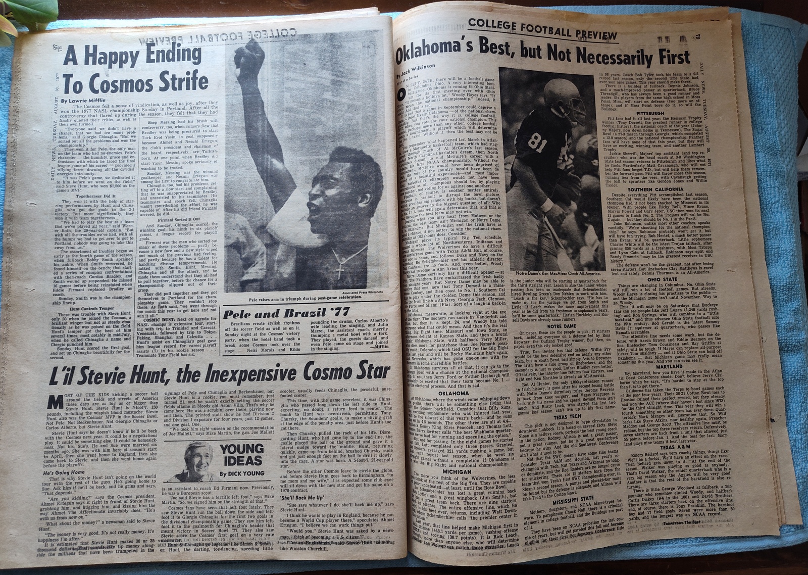 - The sports section features a picture of Pele and coverage of College Football and more!