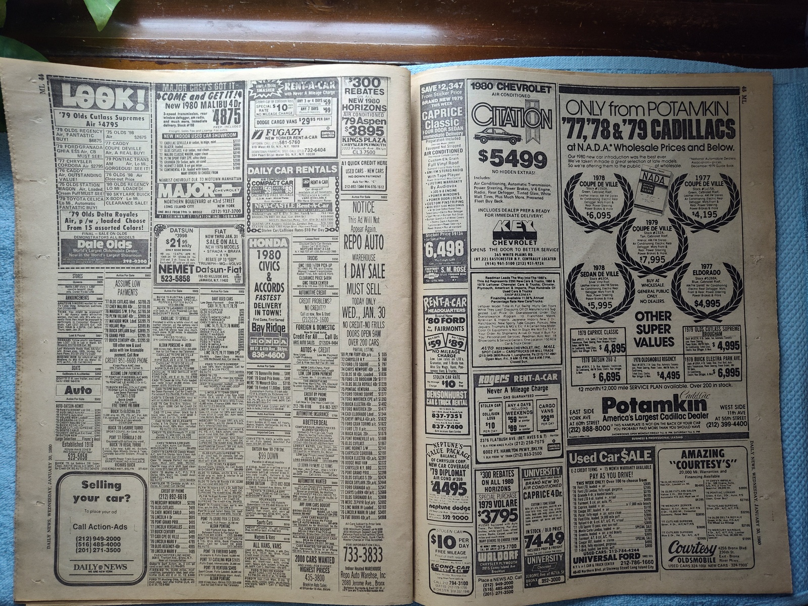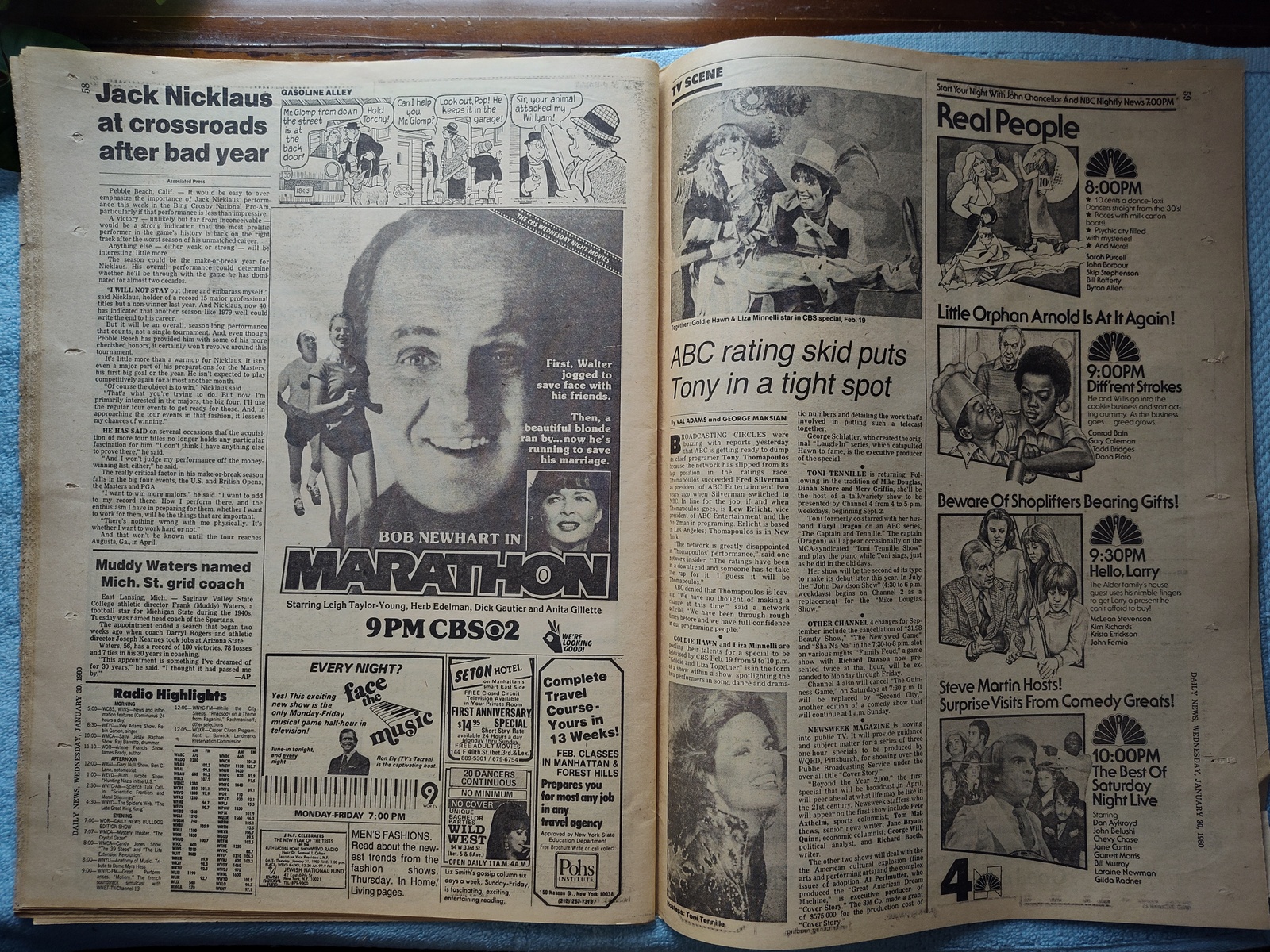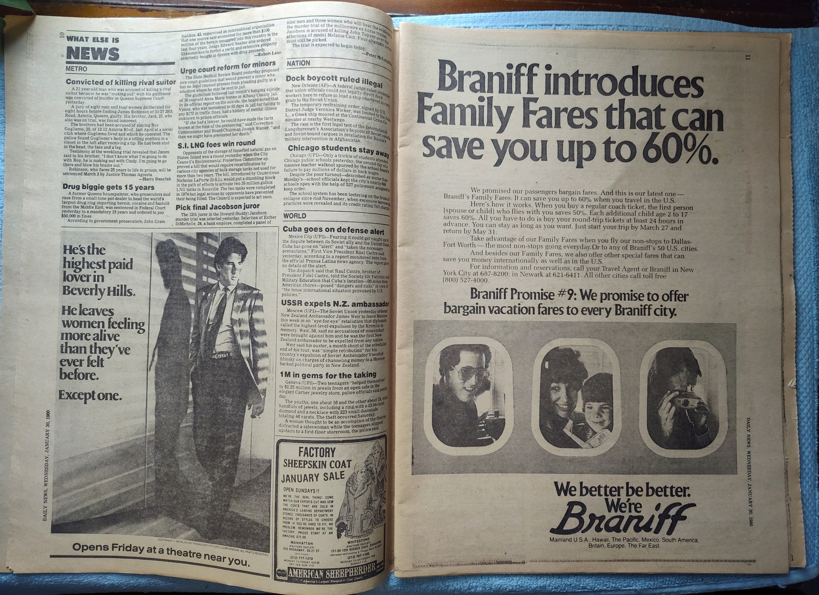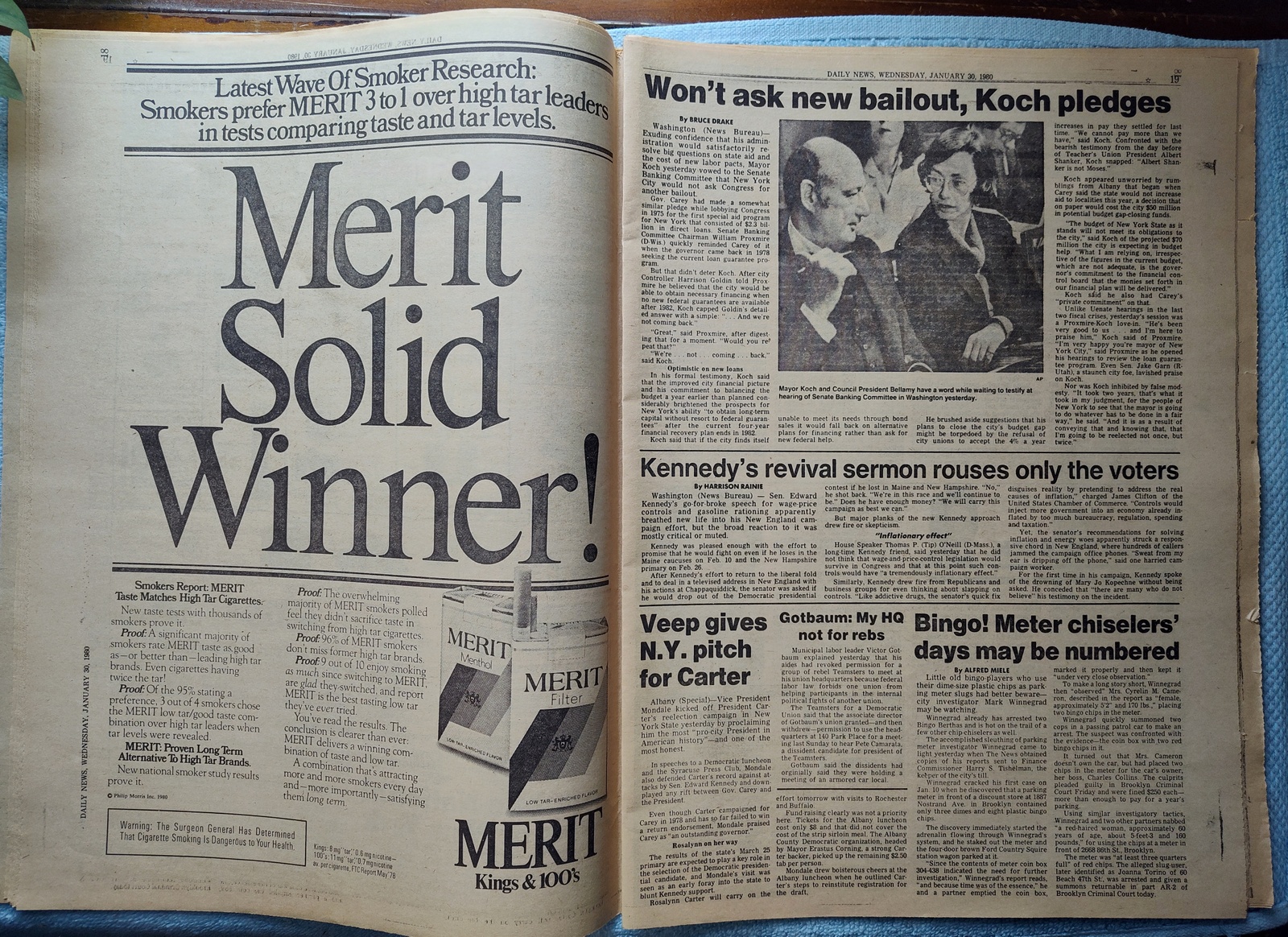 New York Daily News – Wednesday, January 30, 1980. This old newspaper features on the front page a picture of the suspect in the killing of a police officer: Salvatore Desarno. The headline is: ‘City Suspends One-Cop Cars’ and ‘Canadians slip 6 Yanks out of Iran’ and ‘Jimmy Durante dies at 86’ What you see in the pictures is what you get.