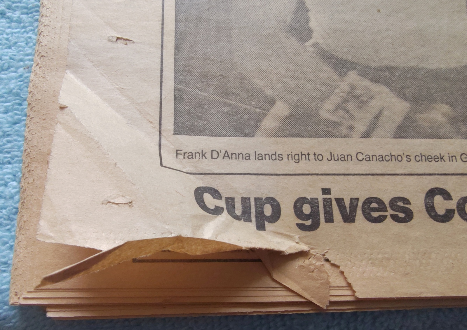 - The back page features a picture of Frank D’Anna landing a punch on Juan Canacho’s cheek in the boxing ring.