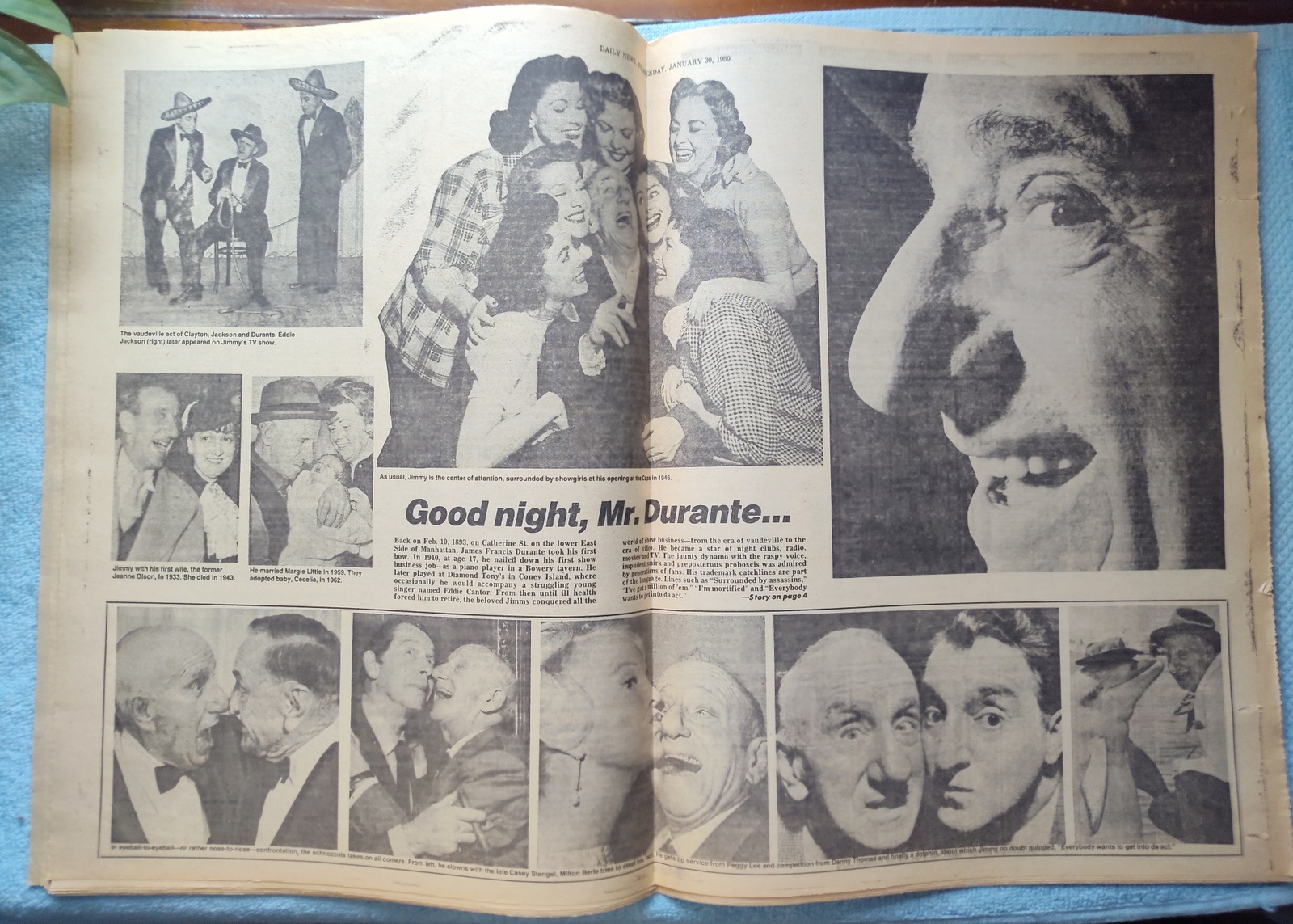 - The centerfold has pictures celebrating the life of Jimmy Durante.