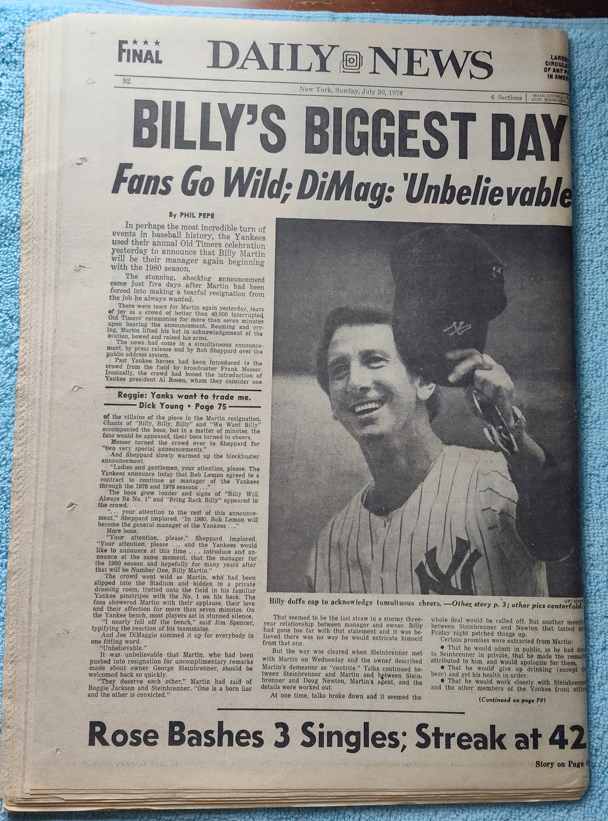 - The back page features a picture of grinning Billy Martin tipping his hat