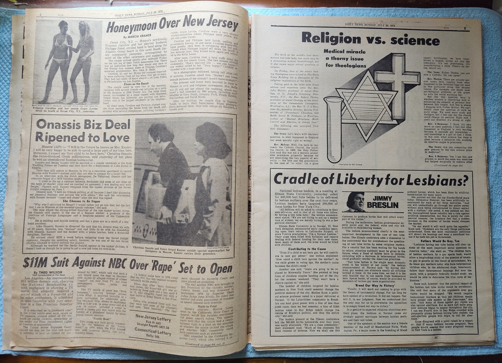 New York Daily News – Sunday, July 30, 1978. This old newspaper features on the front page a picture of recently married Princess Caroline of Monaco and her husband, Philippe Junot, walking on the beach in New Jersey. The headline is: ‘Billy Martin Will Return’ and ‘He’ll Manage Yankees in 1980’ – What you see in the pictures is what you get.
