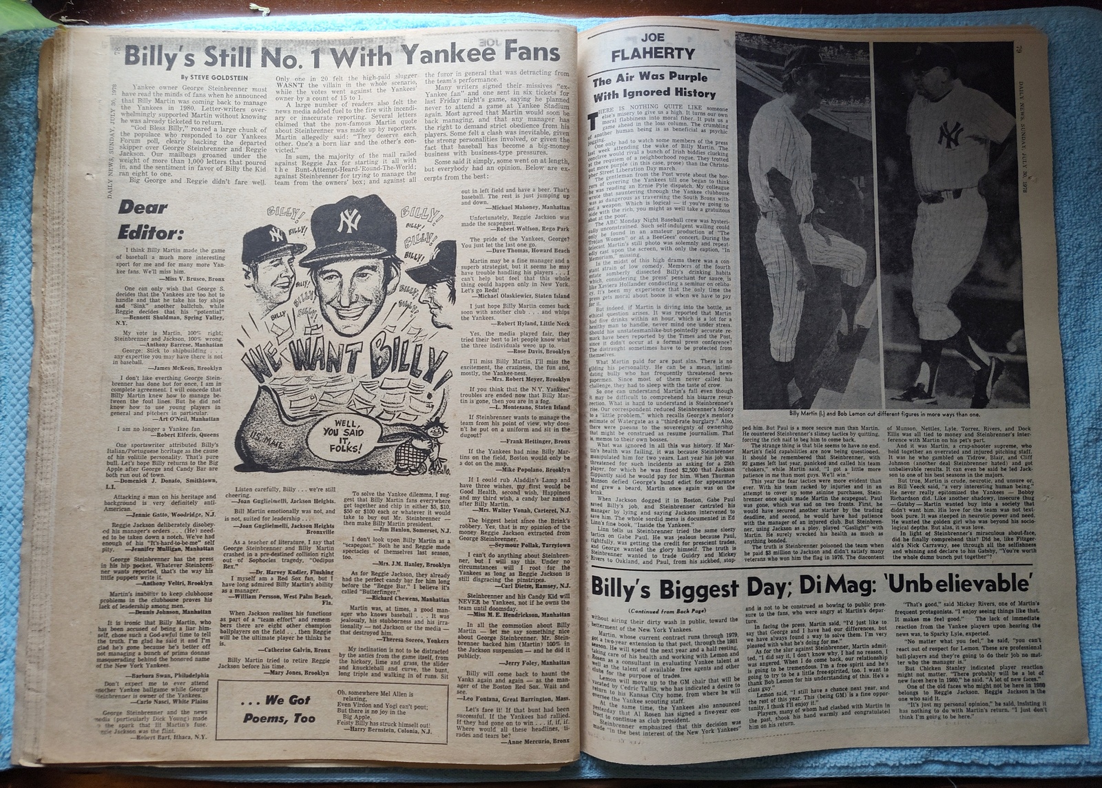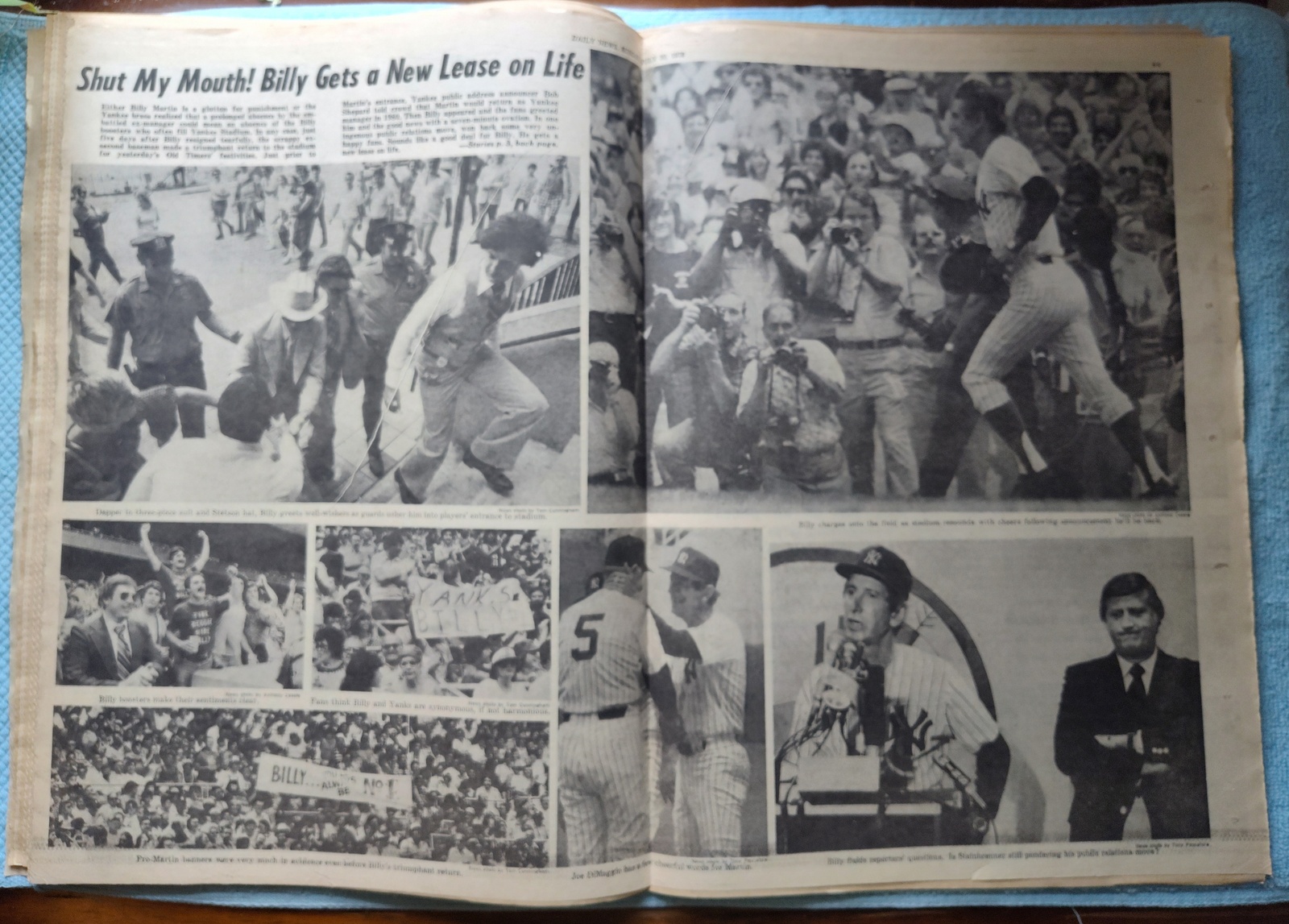 - The centerfold has several pictures of Billy Martin returning to the Yankees