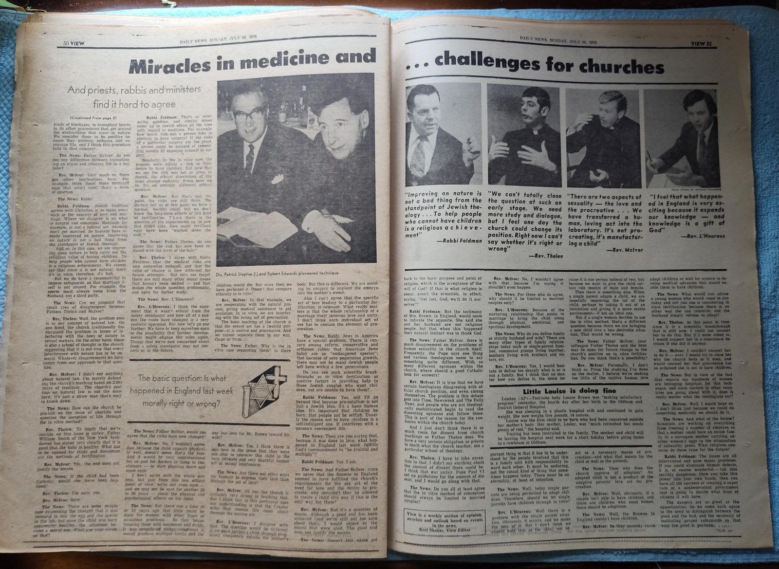 - ‘Religion vs. Science’ – Theologians weigh in on the birth of the first test tube baby.