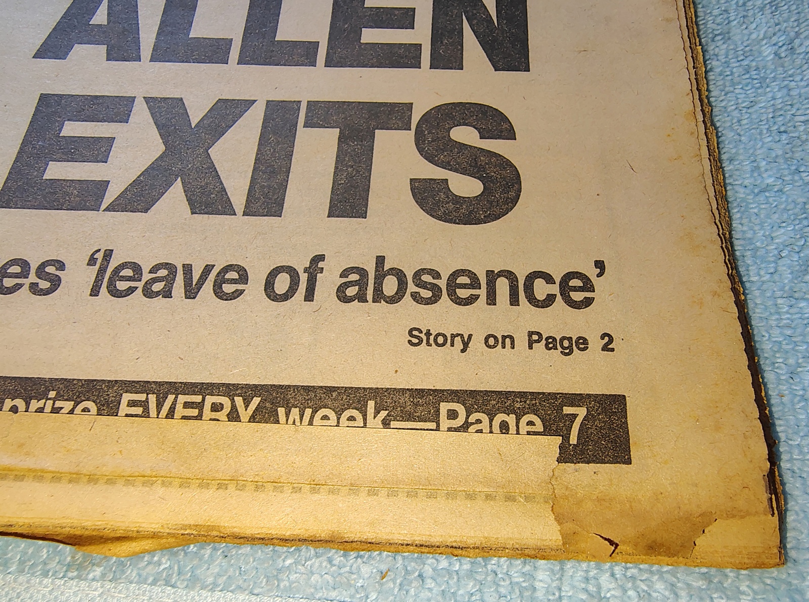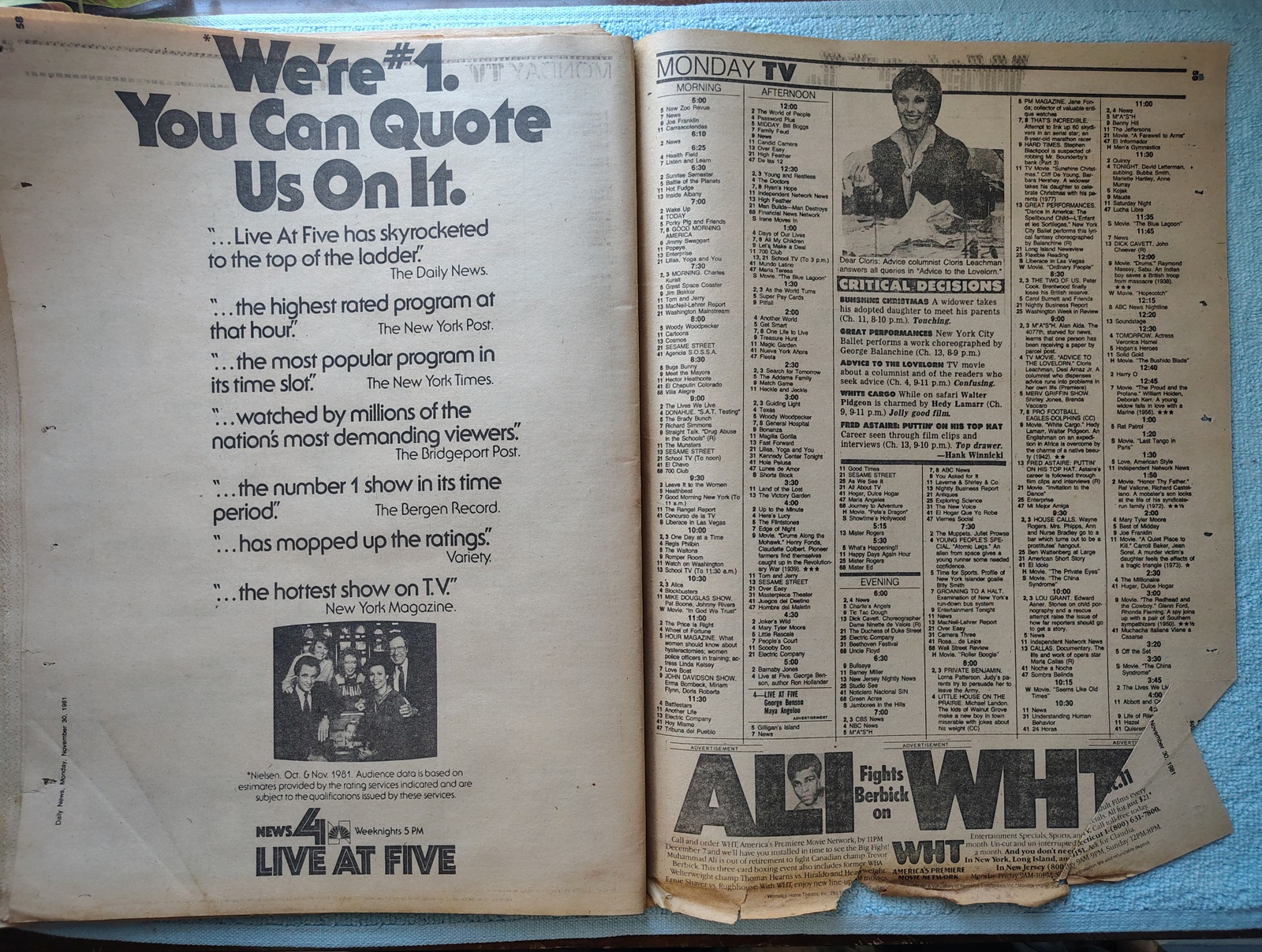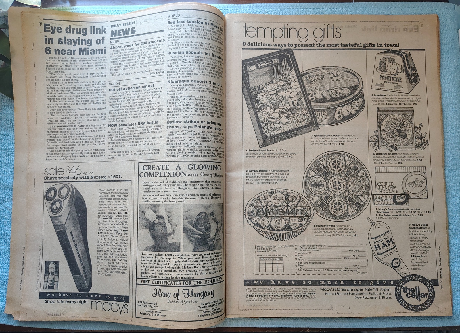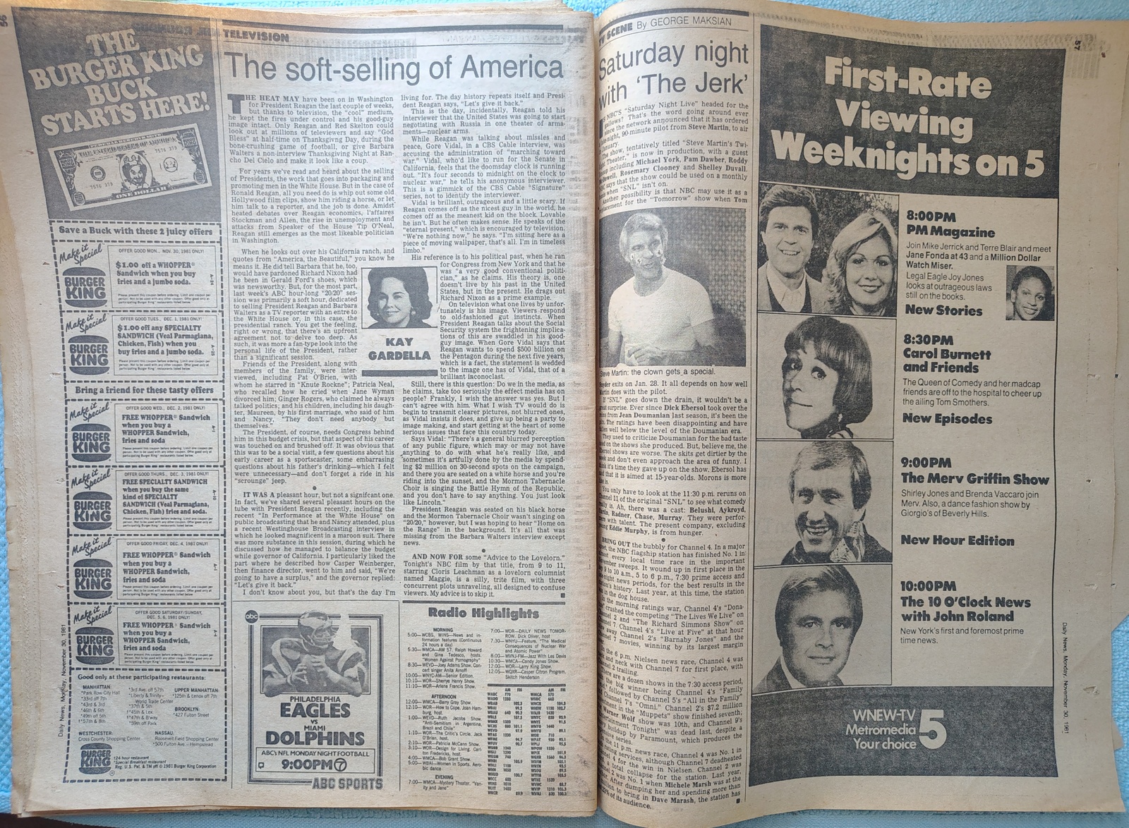 Good readable condition for a newspaper from 1981! Some minor discoloration, creasing, wear and tear around the edges. All 60 pages are included, plus the NJ Metro insert – LOOK AT THE PICTURES!