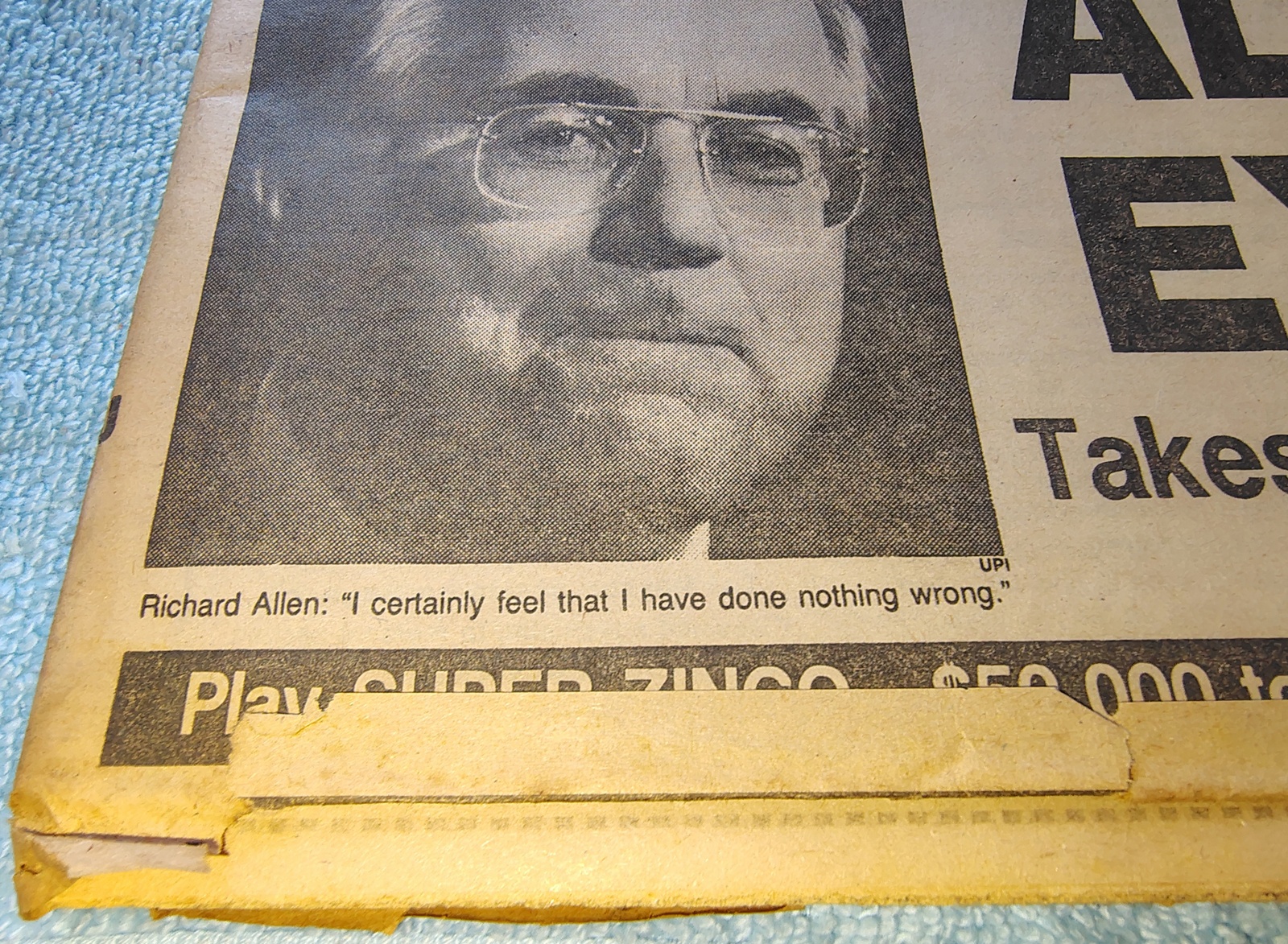 - ‘Allen bows out of pending probe’ – National Security advisor Richard Allen will step down until an investigation into $1K given to him by a Japanese magazine can be completed.