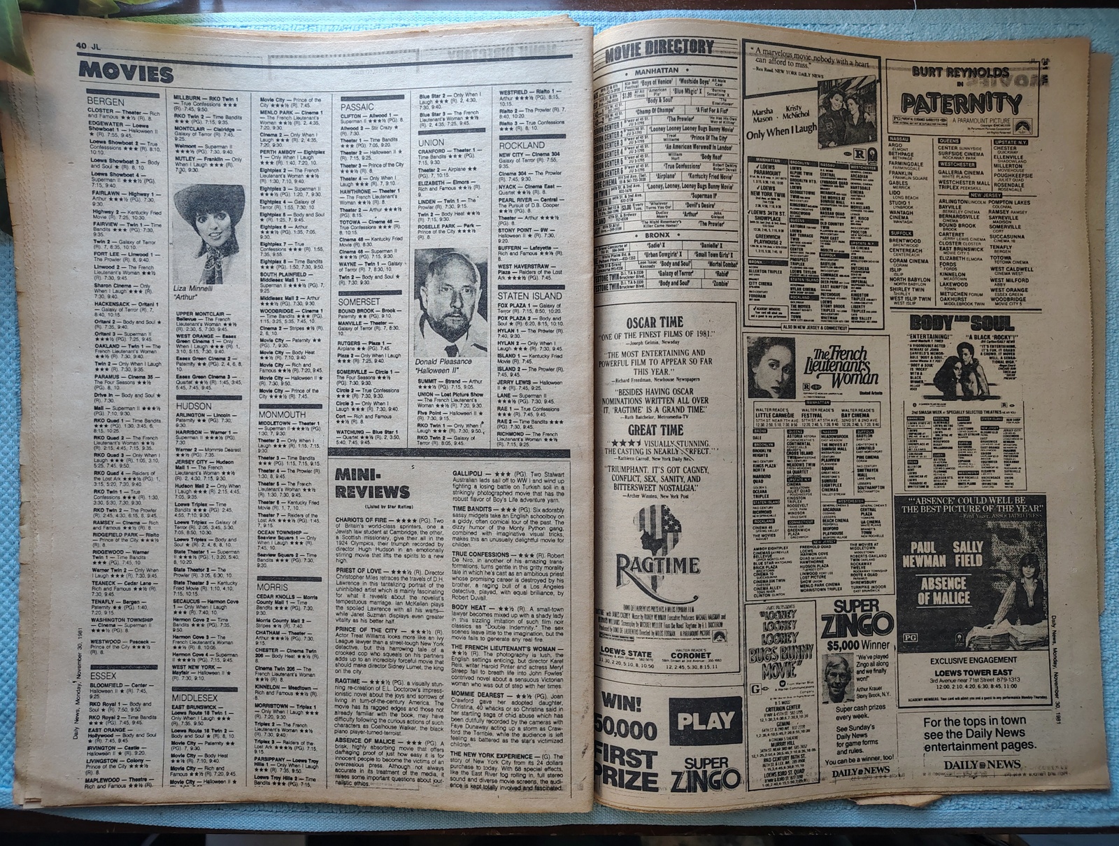 - Movie ads include: Halloween II, Raiders of the Lost Ark, Time Bandits, Absence of Malice, and more!