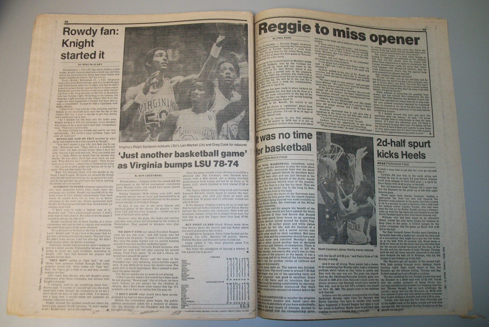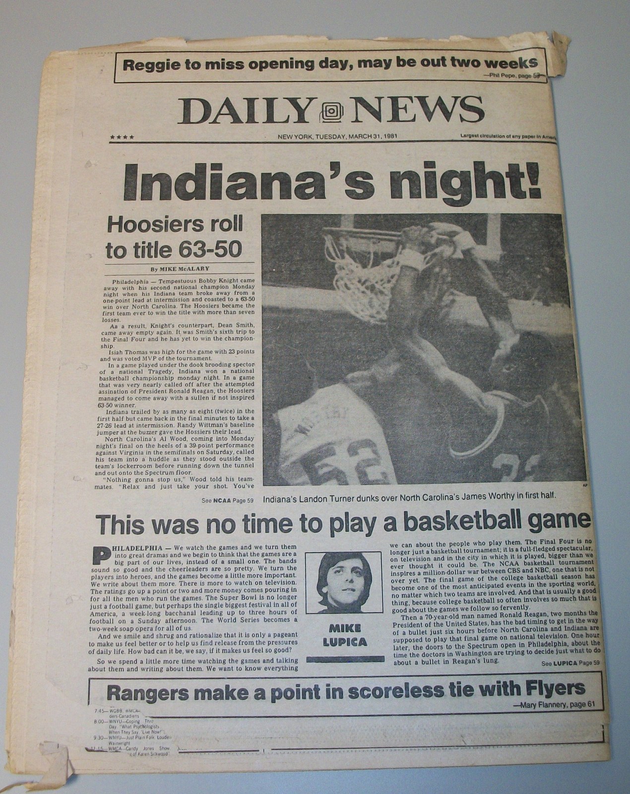 - The Sports section features coverage of Indiana winning the NCAA tournament.