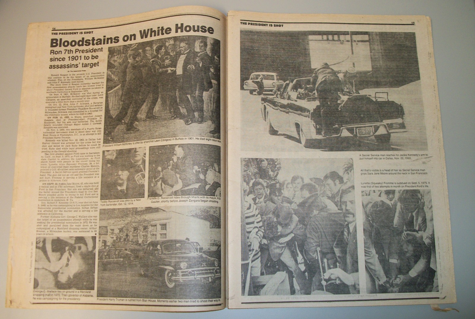 - ’15 pages of stories and dramatic pictures’ about the assassination attempt on President Reagan by John Hinckley Jr.
