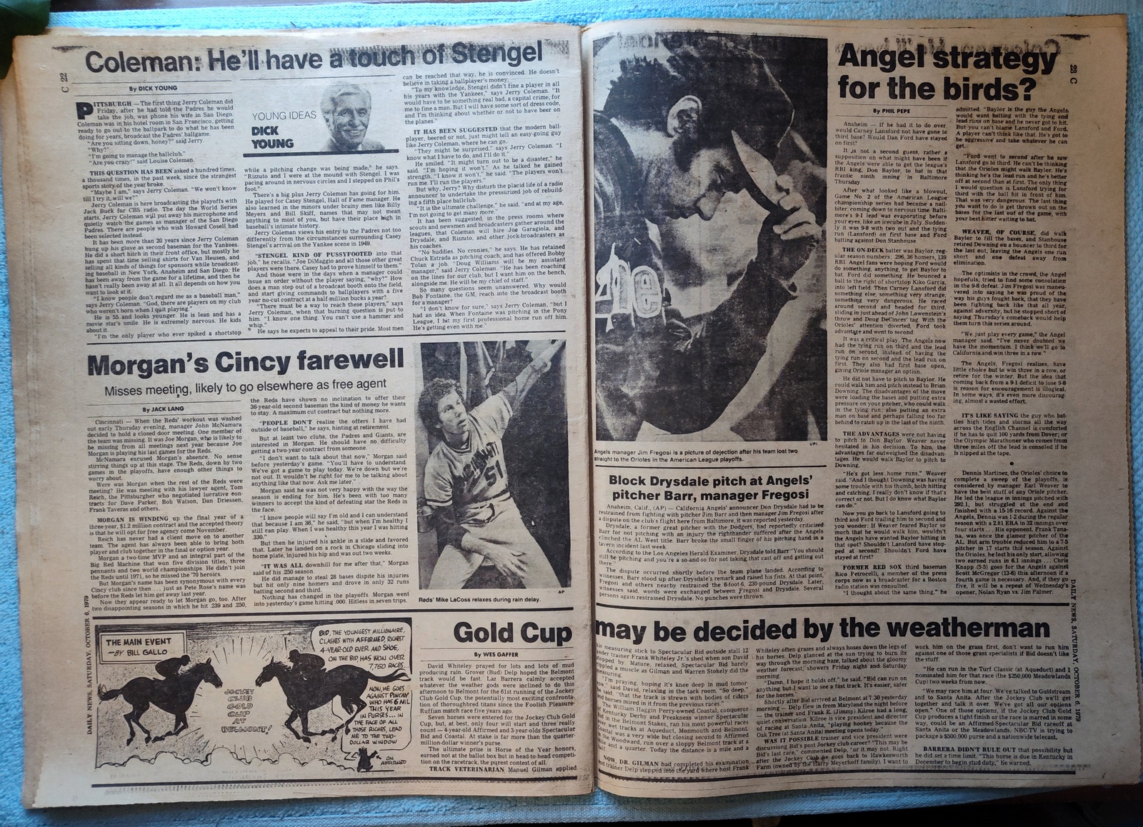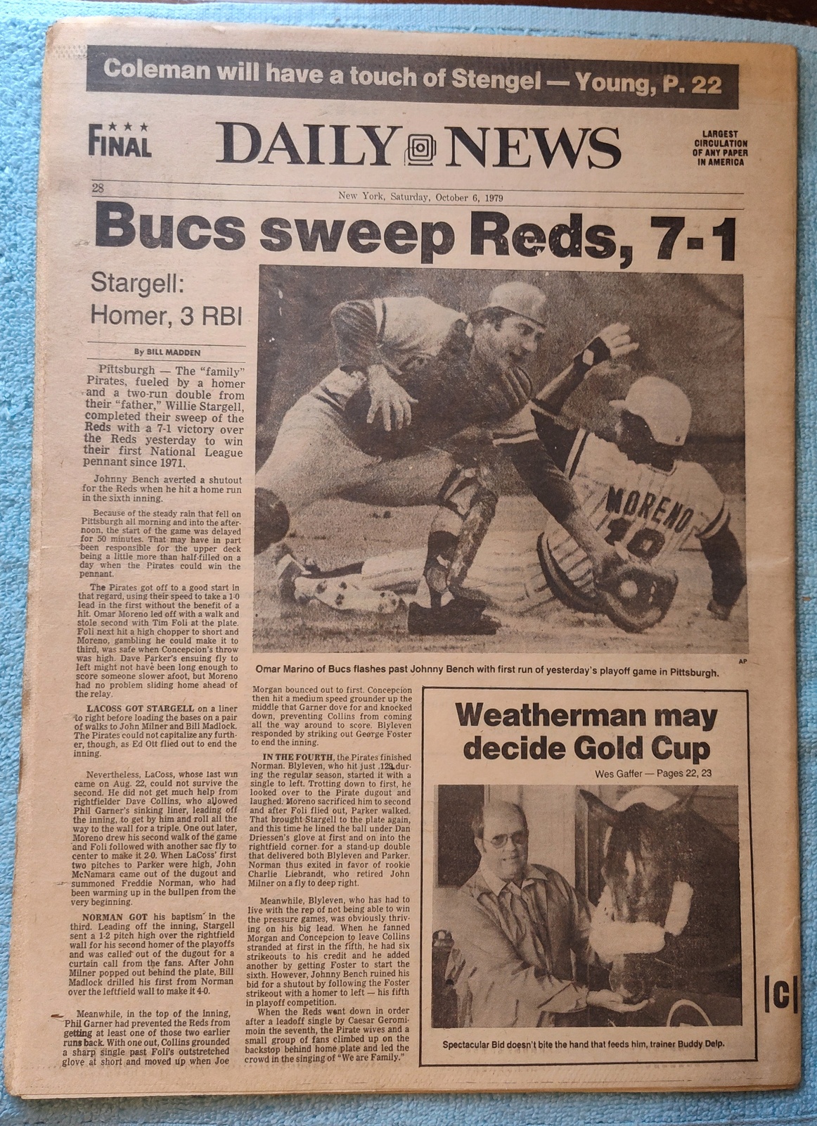 - The back page features a picture of Omar Moreno sliding past Johnny Bench..