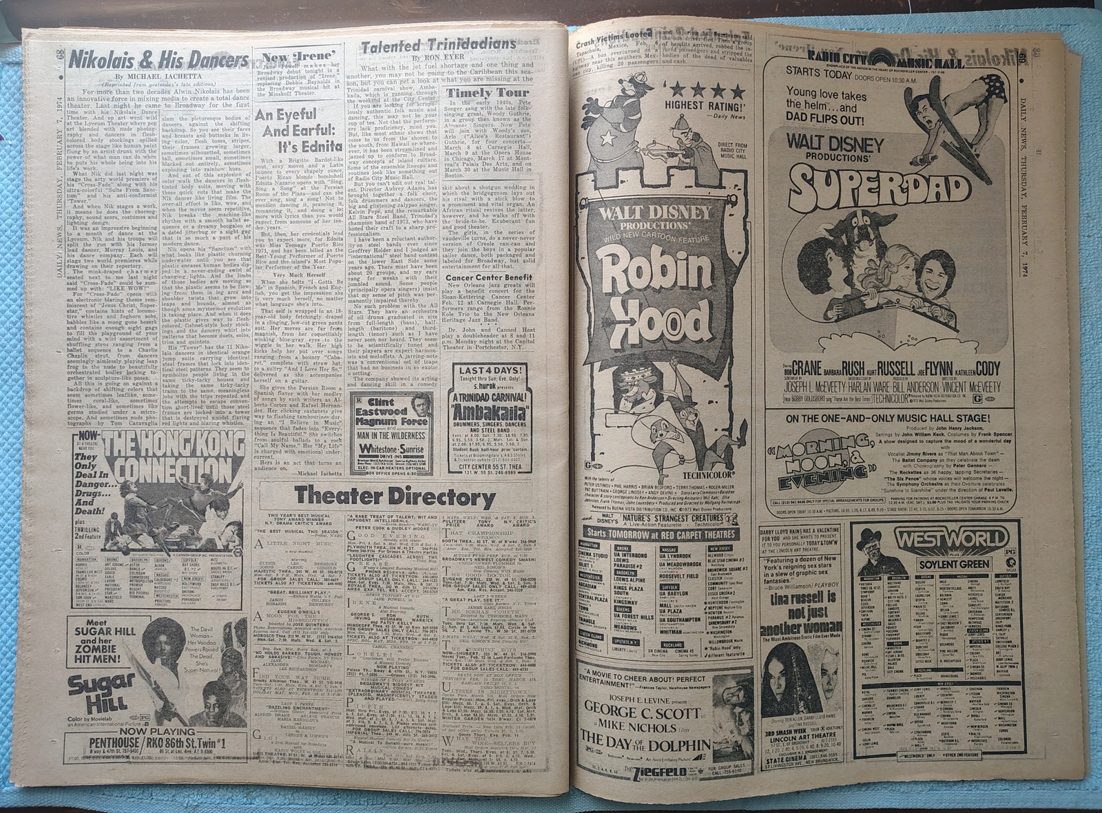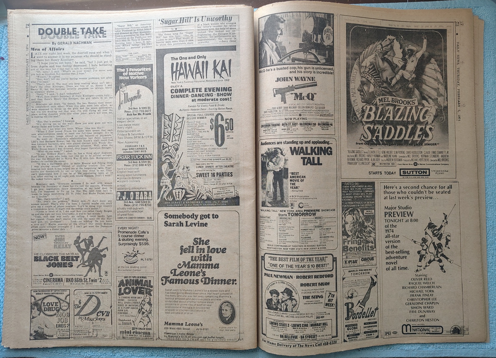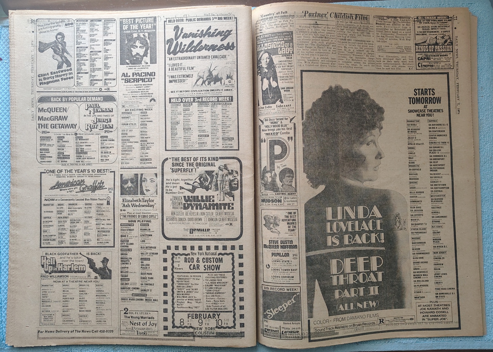 - Movie ads include: The Disney Movies Robin Hood and Superdad, Linda Lovelace in Deep Throat Part II, American Graffiti, Magnum Force with Dirty Harry, Blazing Saddles, and more.