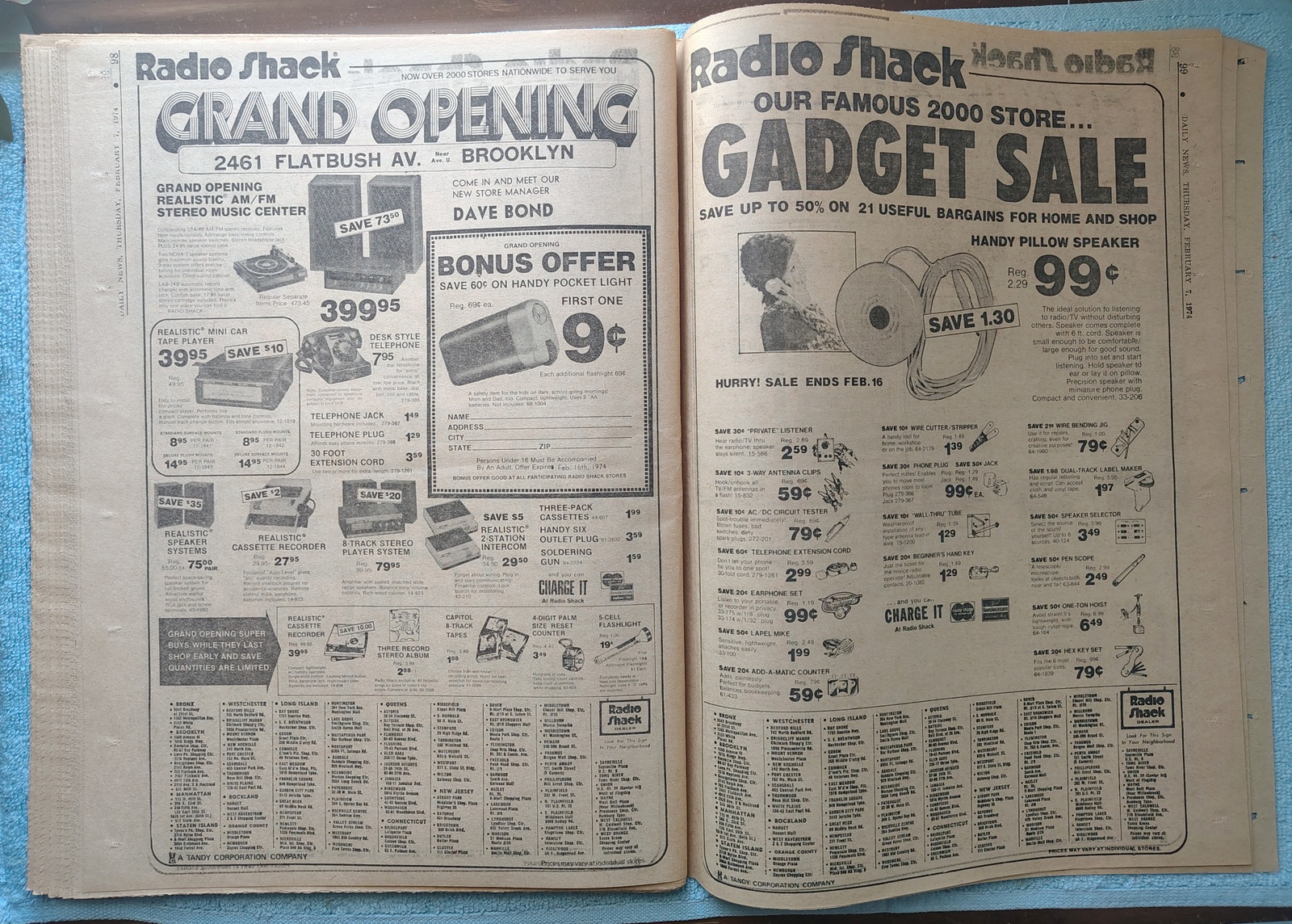 - Radio Shack is having a grand opening at 2461 Flatbush Av. in Brooklyn with a handy pocket light for only 9c.