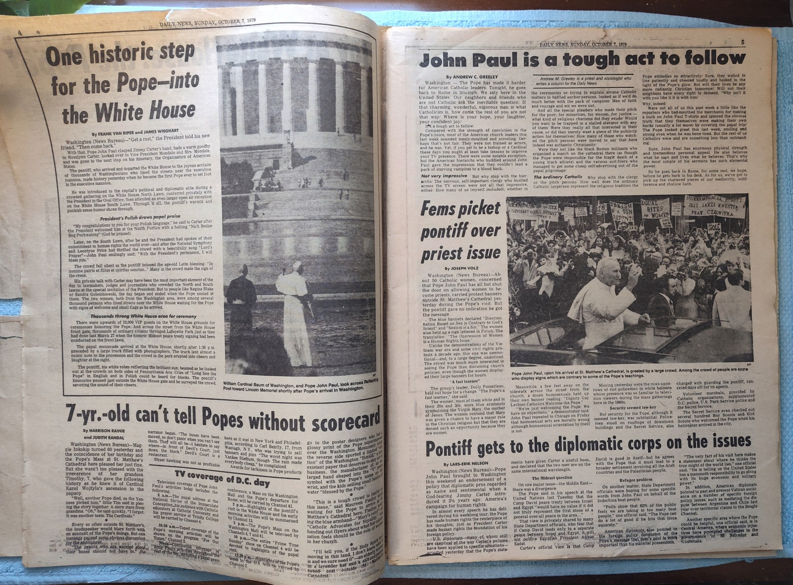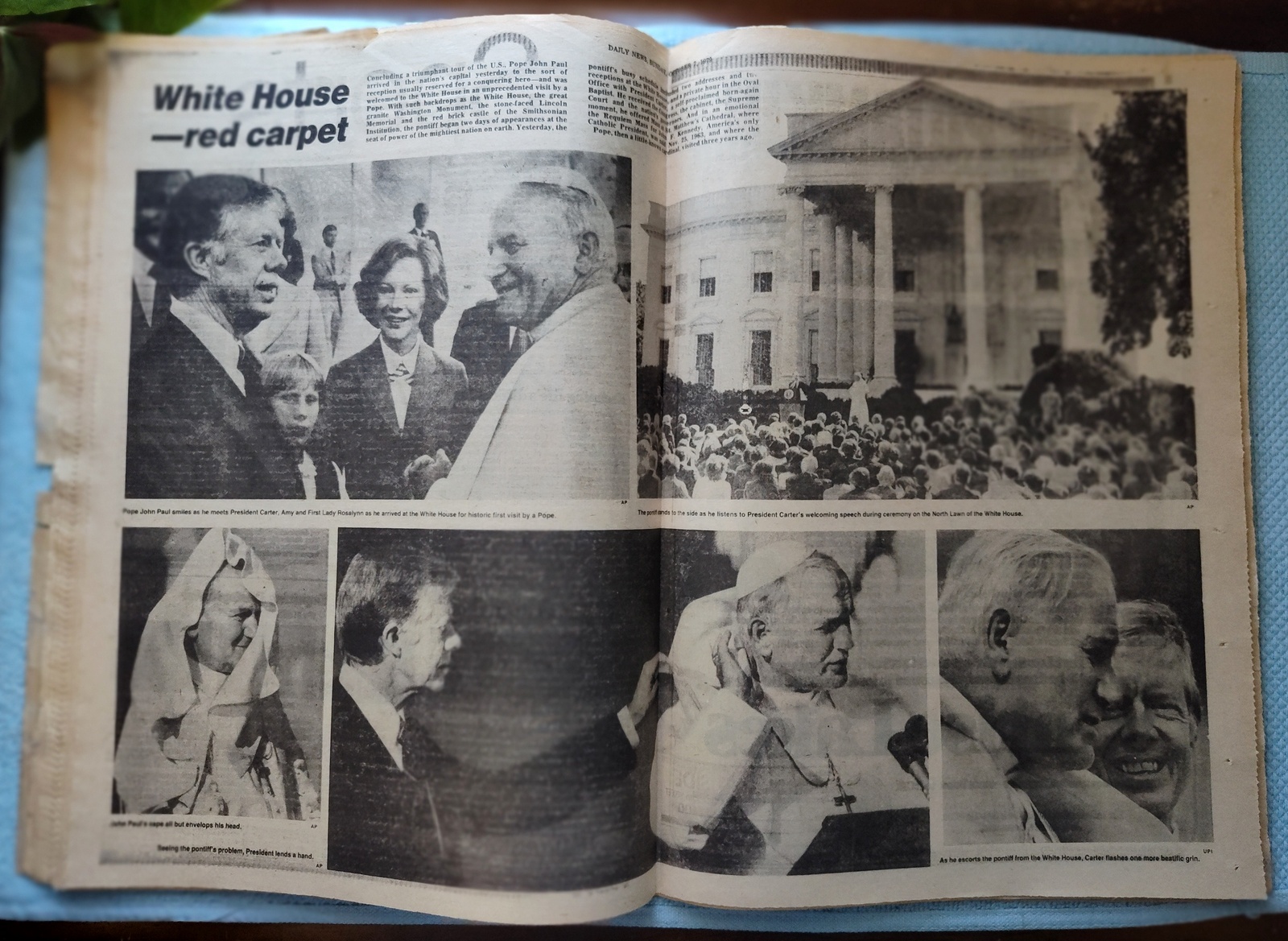 - The centerfold has pictures of Pope John Paul II’s visit with President Carter at the White House.