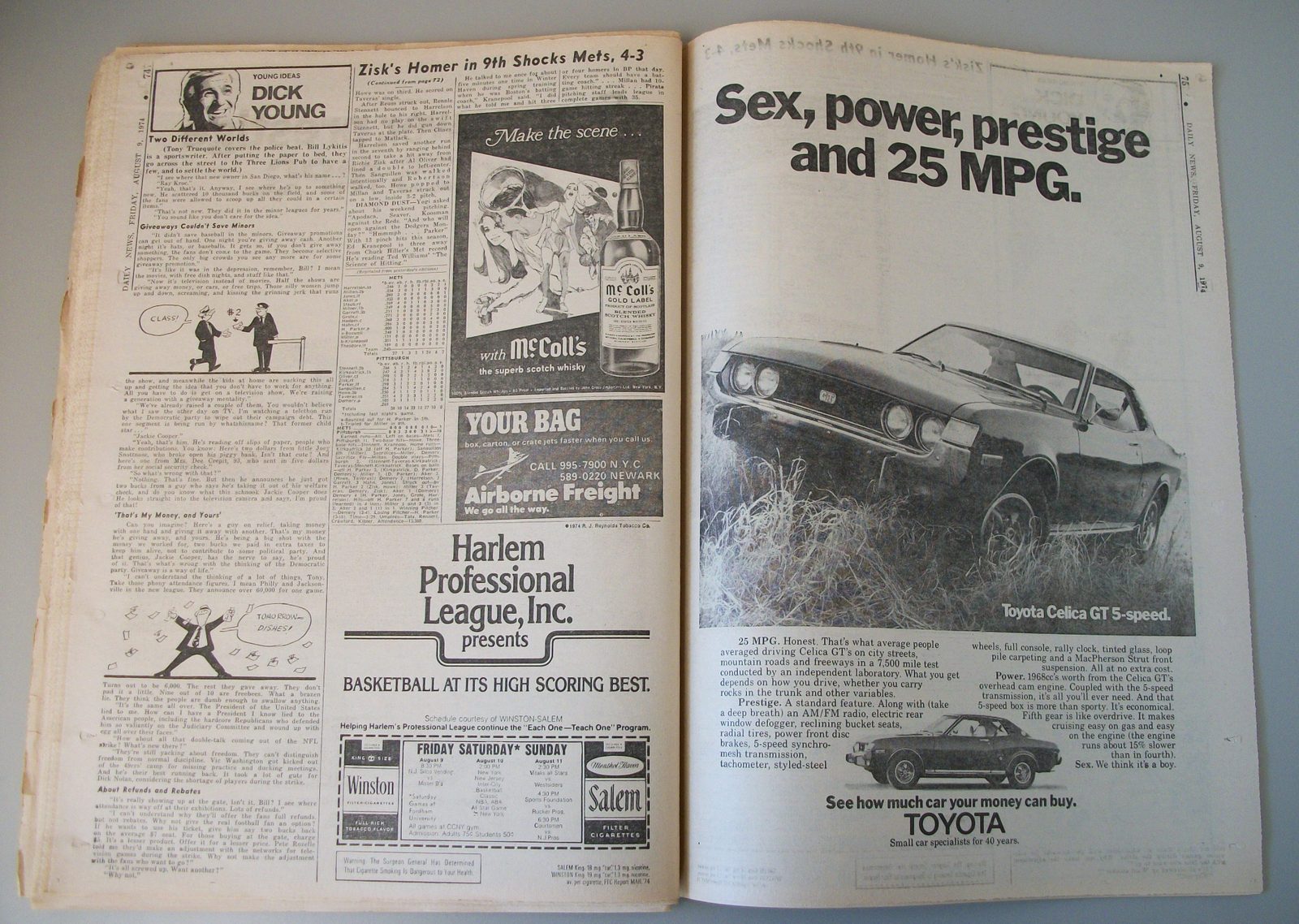 - A full page ads for the Toyota Celica – ‘Sex, Power, Prestige, and 25 MPG’