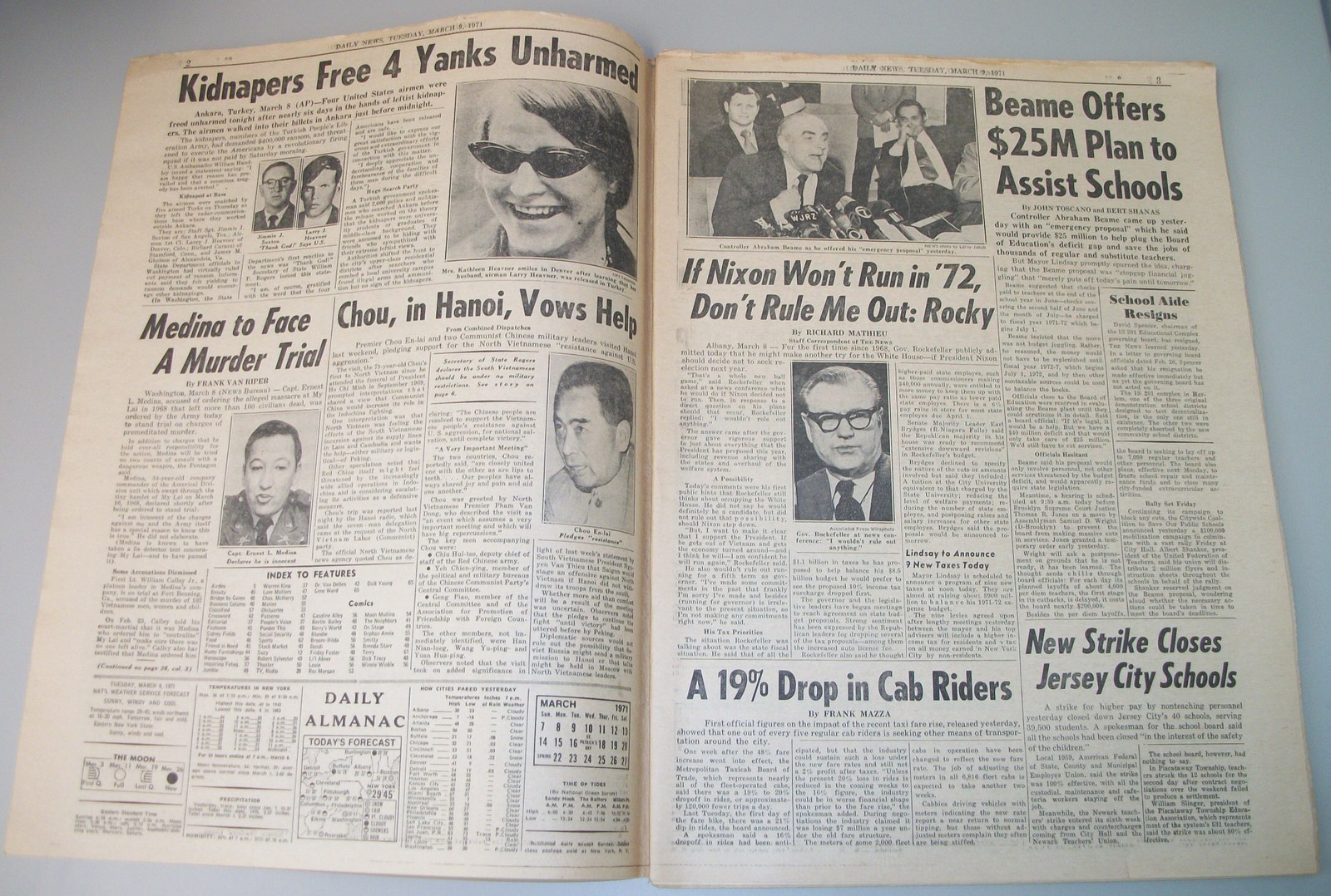 - “Medina To Face A Murder Trial” – Ernest Medina, accused of ordering the massacre at My Lai ‘. . .to stand trial on charges of premeditated murder’