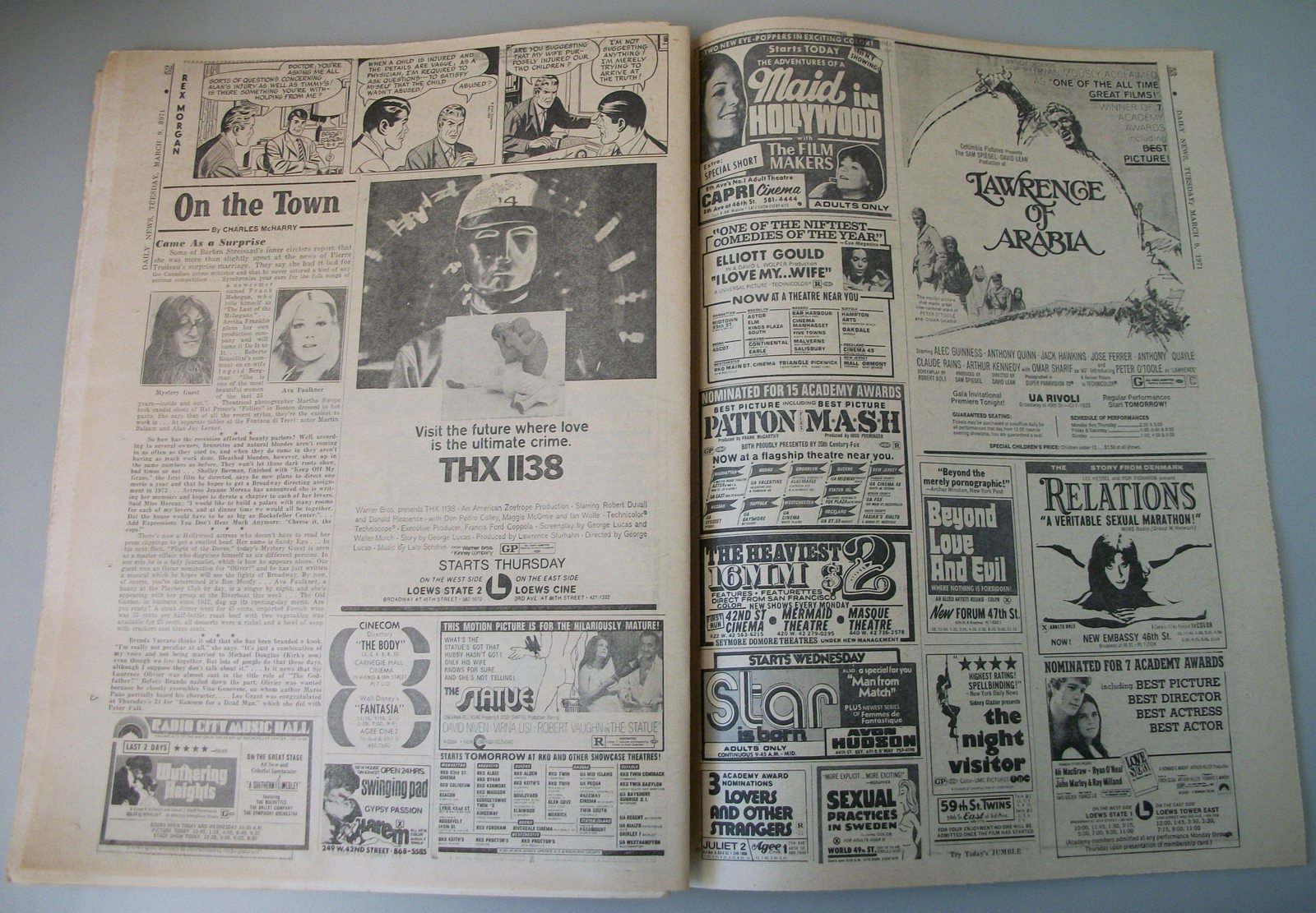 - Movie ads for THX 1138, Lawrence of Arabia, A New Leaf with Walter Matthau, and more