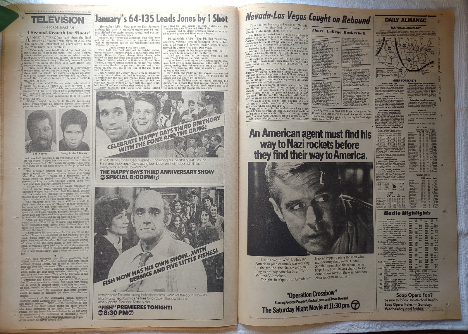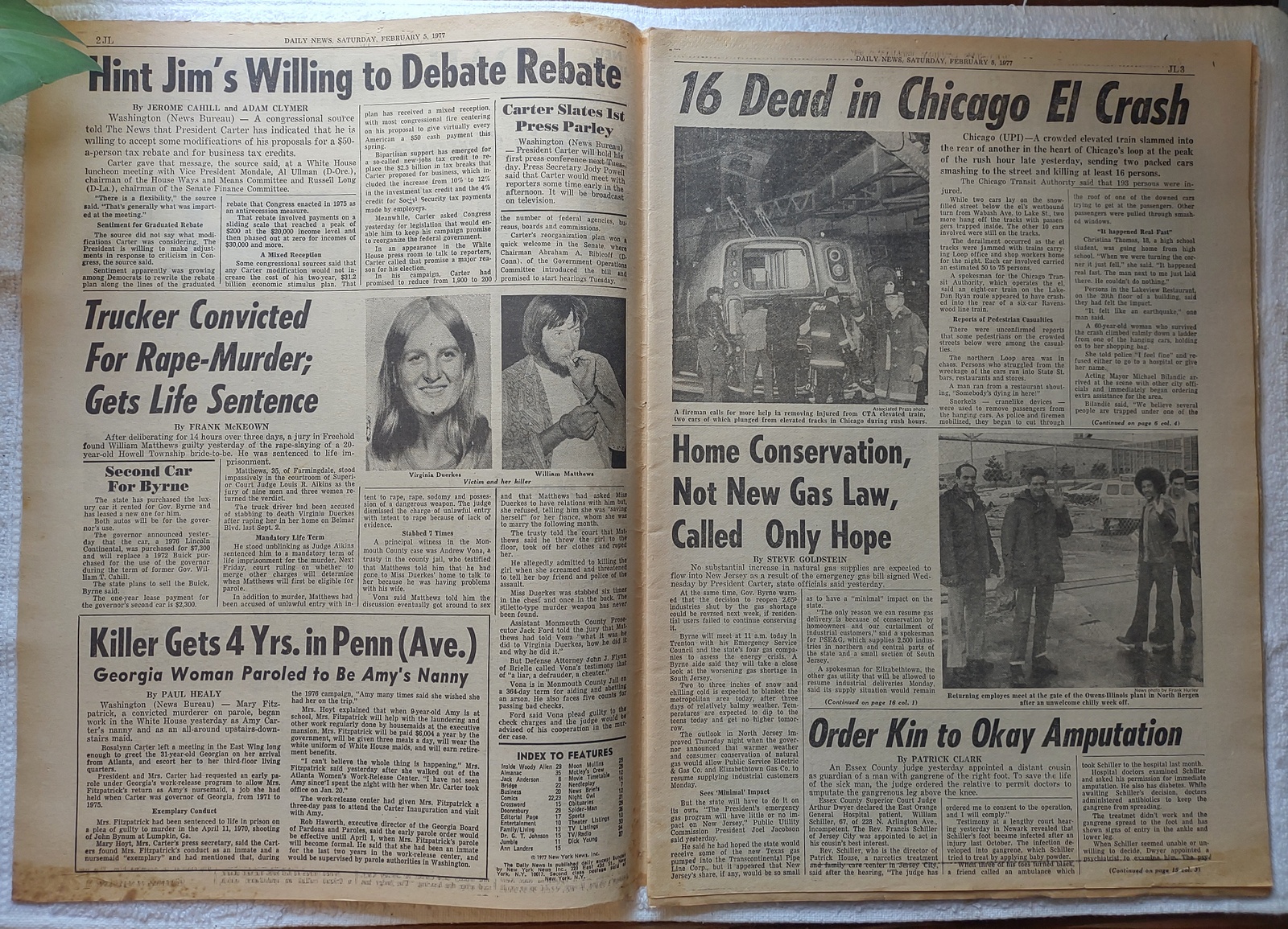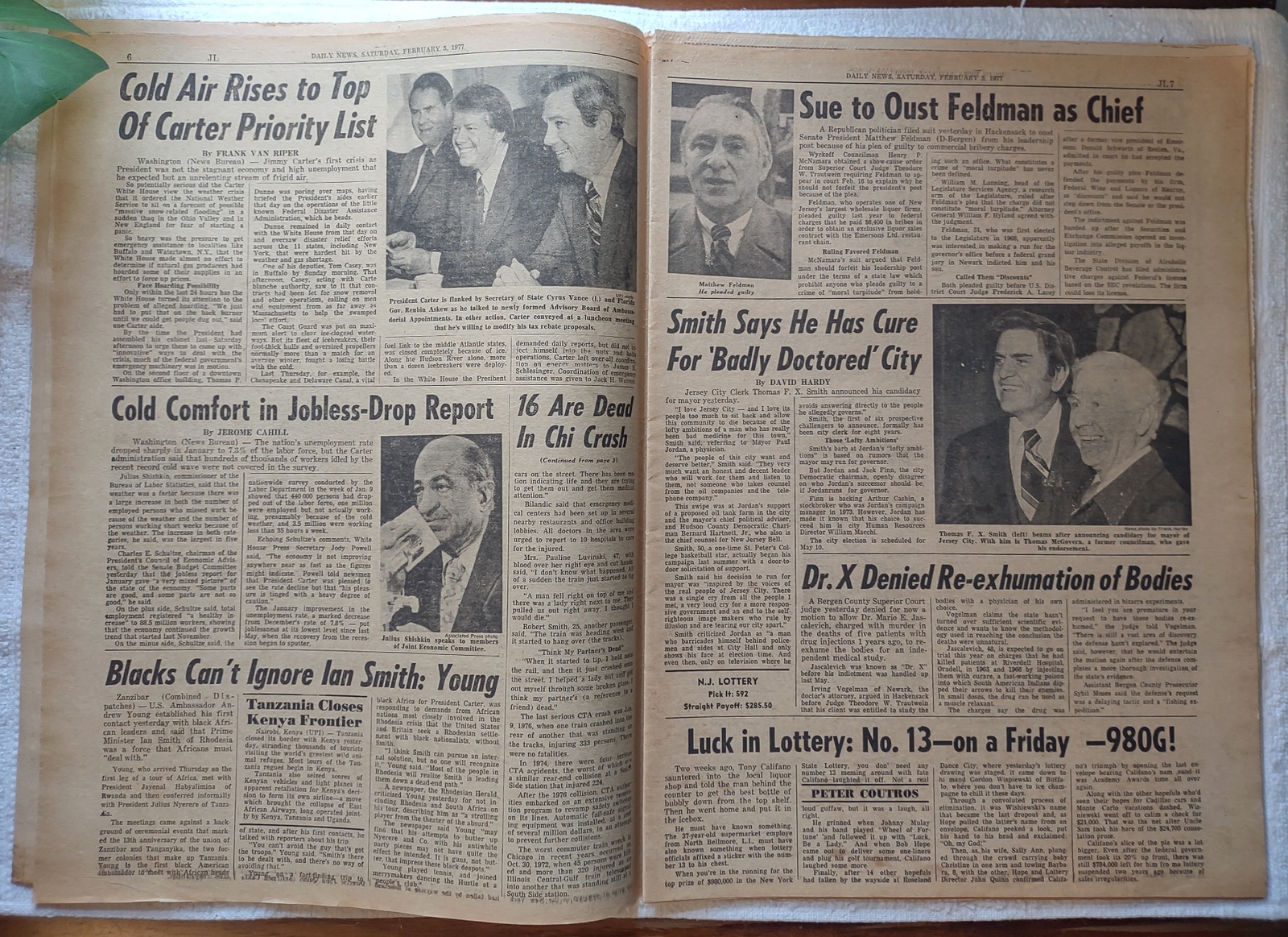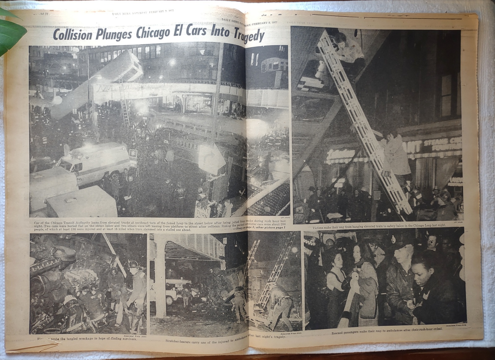 New York Daily News (New Jersey Edition) – Saturday, February 5, 1977. What you see in the pictures is what you get. This is a very interesting old newspaper which features as the front page story: 16 Die in Chicago – EL HITS STREETS – 193 Hurt As Trains Crash in Loop District