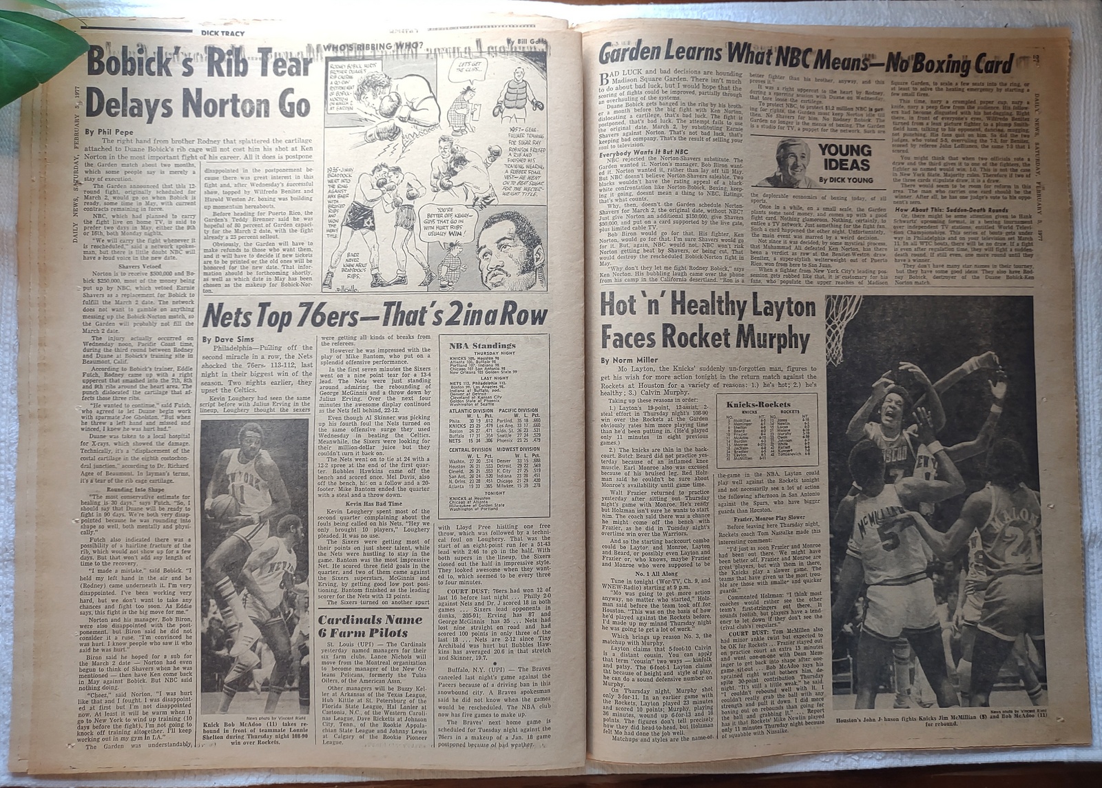 - The sports section has coverage of basketball, boxing, hockey, and horse racing/
