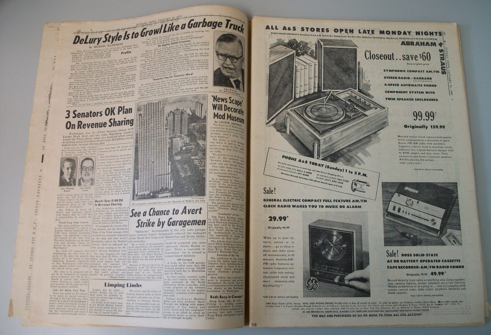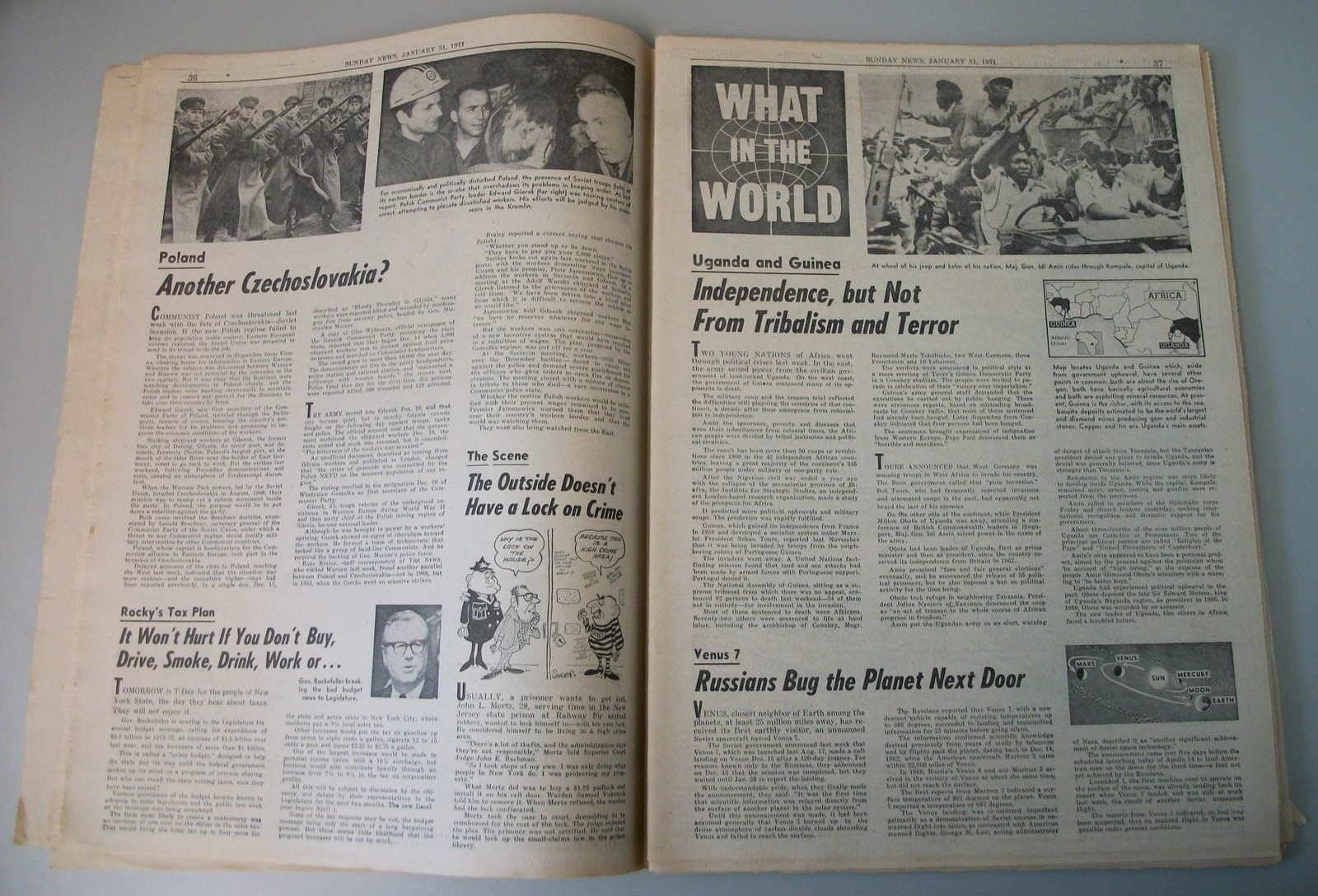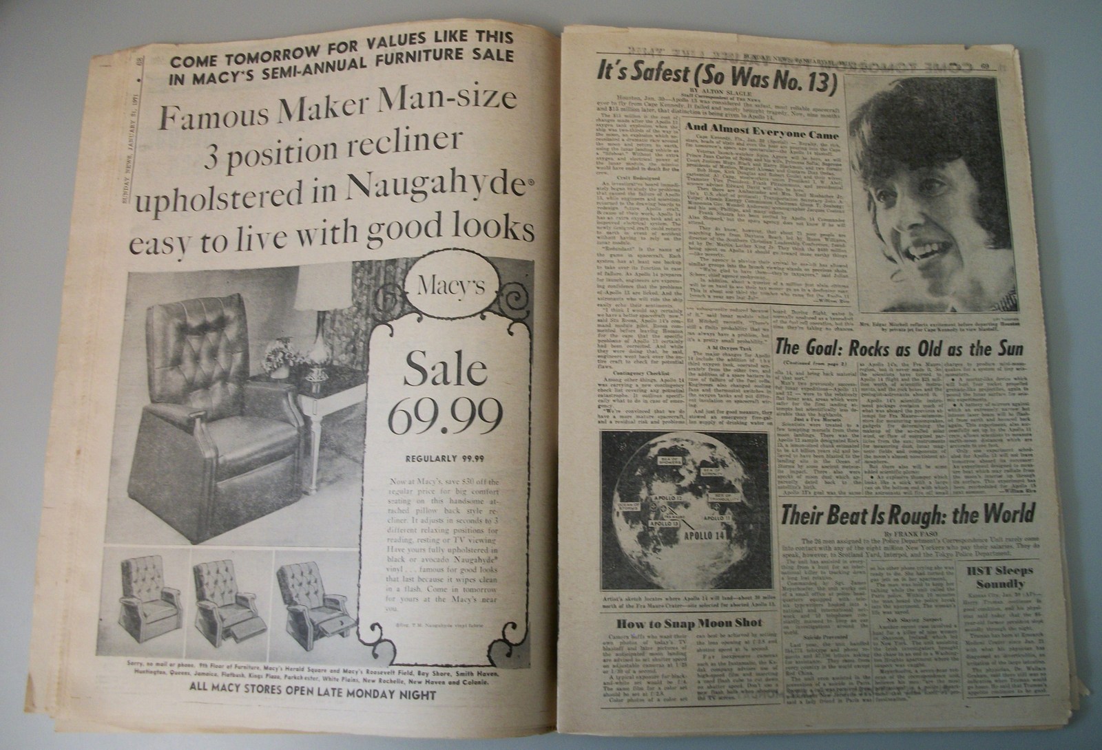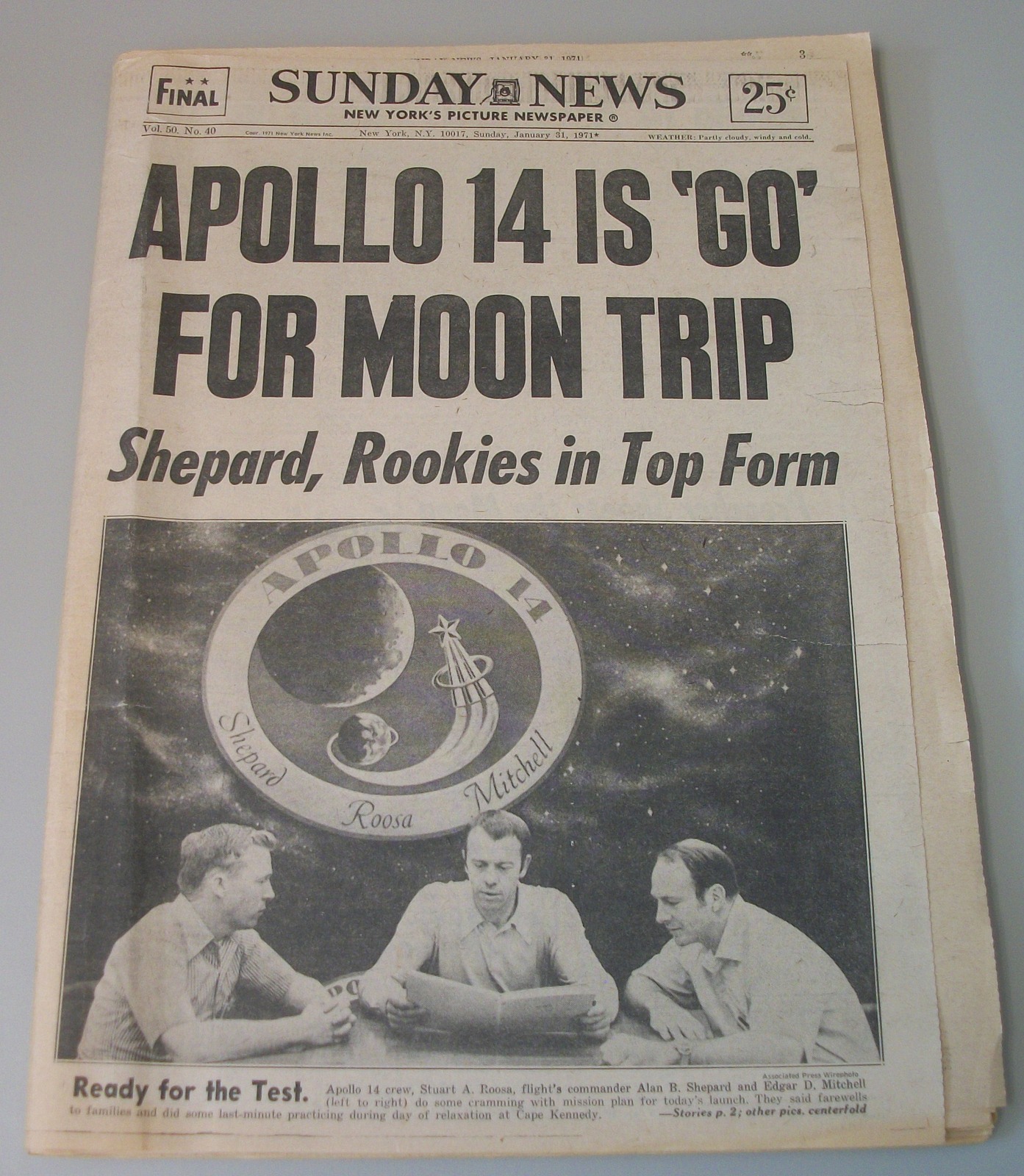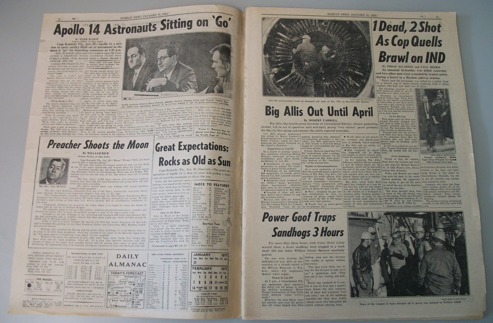 New York Daily News – Sunday January 31, 1971. What you see in the pictures is what you get: all 144 pages are included. This is a very interesting old newspaper which features as the front page stories: “Apollo 14 Is ‘Go’ For Moon Trip” “Shepard, Rookies In Top Form” There are articles about: