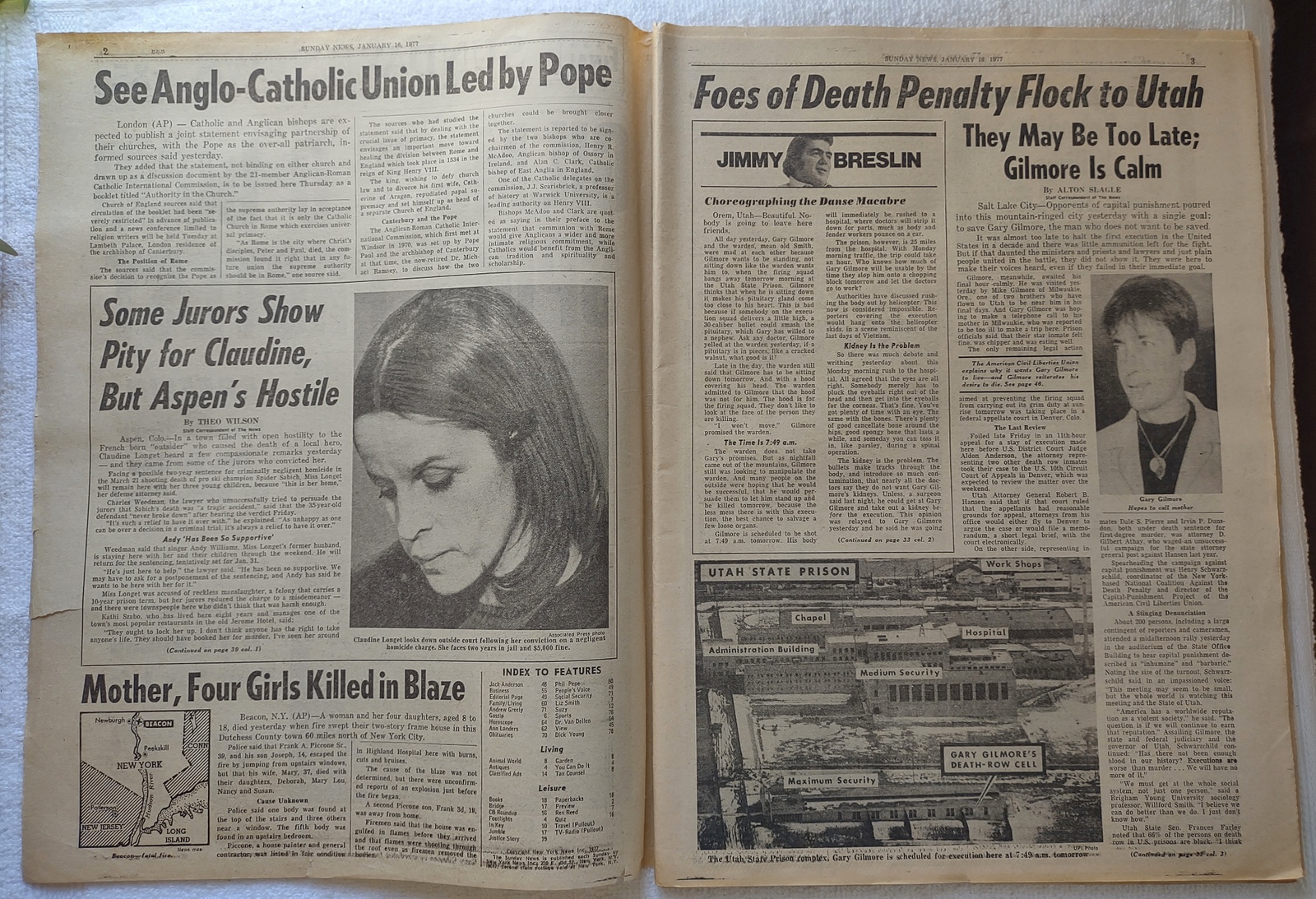 - “Gilmore D-Hour Spurs Protests” – Gary Gilmore scheduled to be executed by firing squad in Utah.