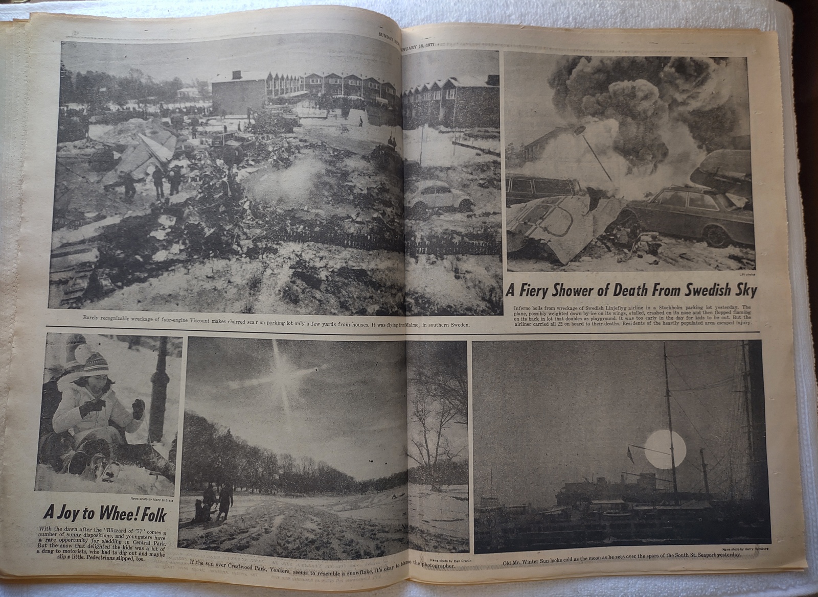 - The centerfold has pictures of a plane crash in Sweden as well as some sledders and snow scenes.