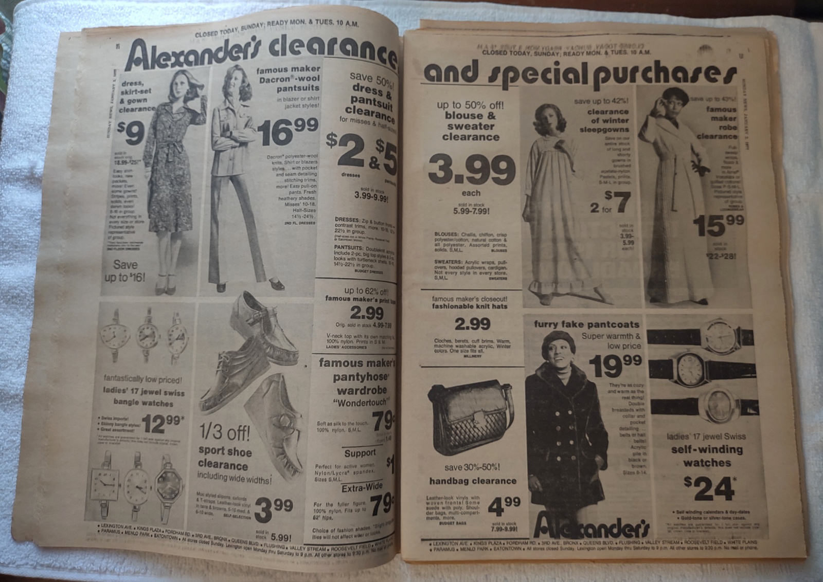 - Lots and lots of ads for 1970s fashions, furnishings, and electronics (TVs, Stereos, radios)