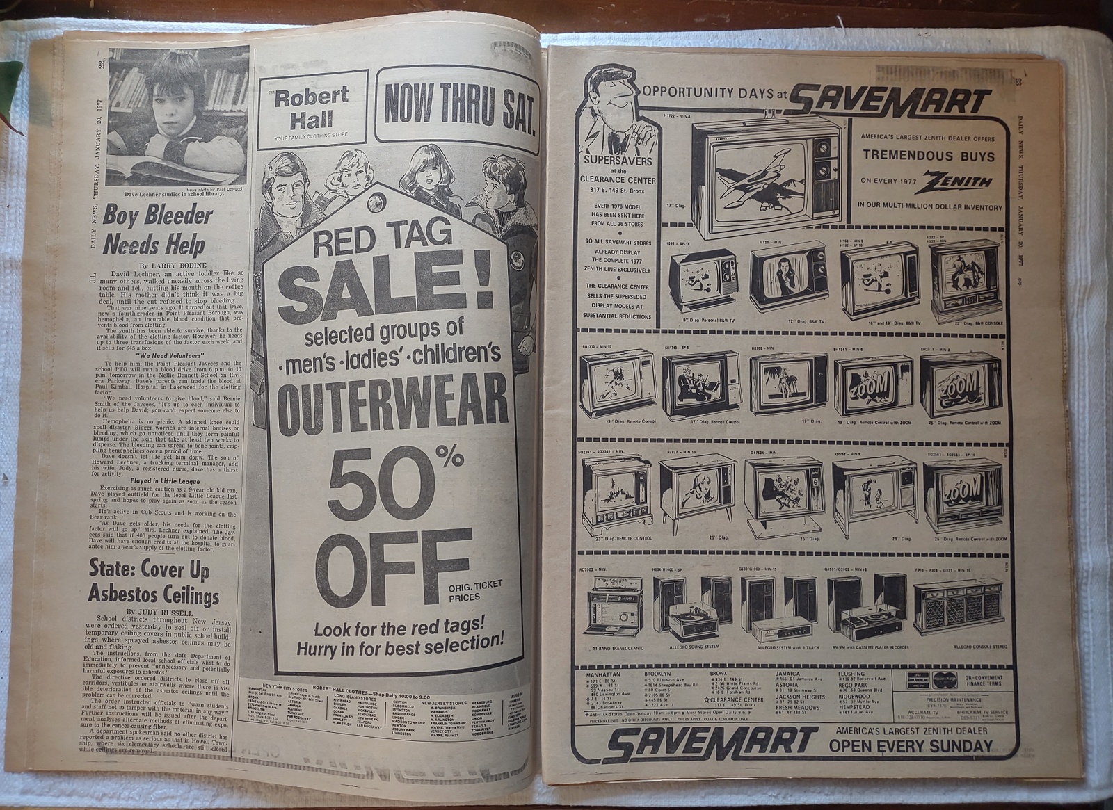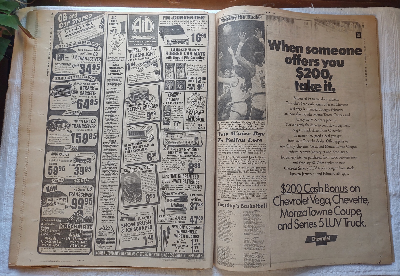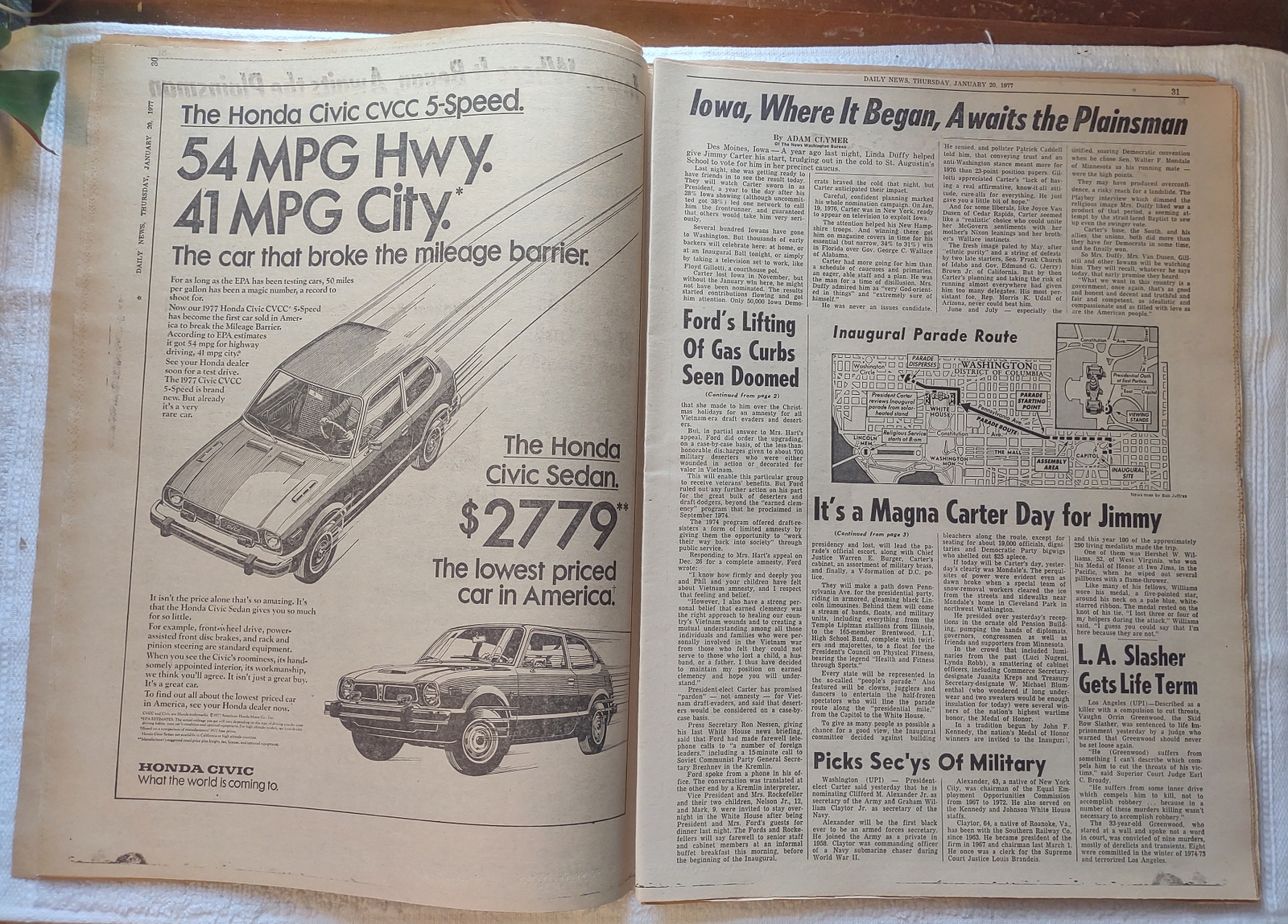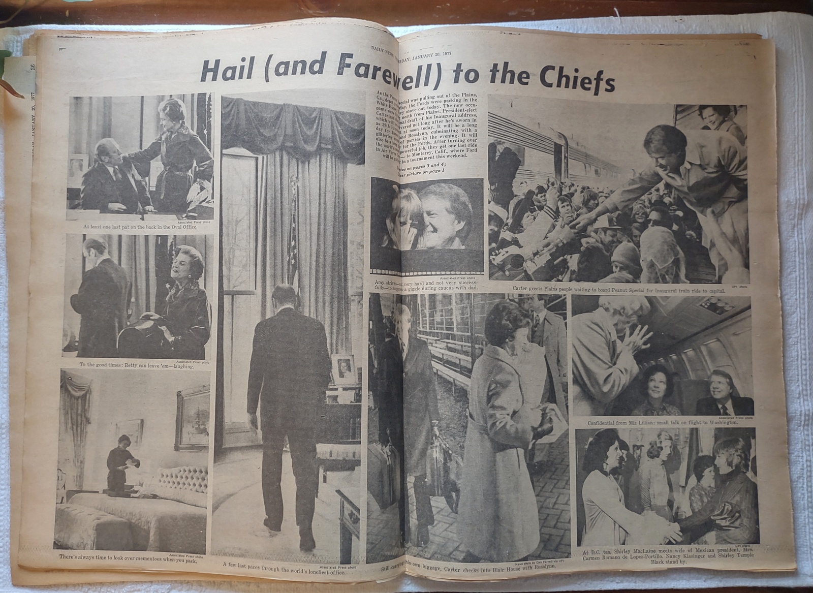 New York Daily News (New Jersey Edition) – Thursday, January 20, 1977. What you see in the pictures is what you get. This is a very interesting old newspaper which features as the front page story: N.J. Gas Crunch Eases Slightly, Carter Will Take Oath at Noon