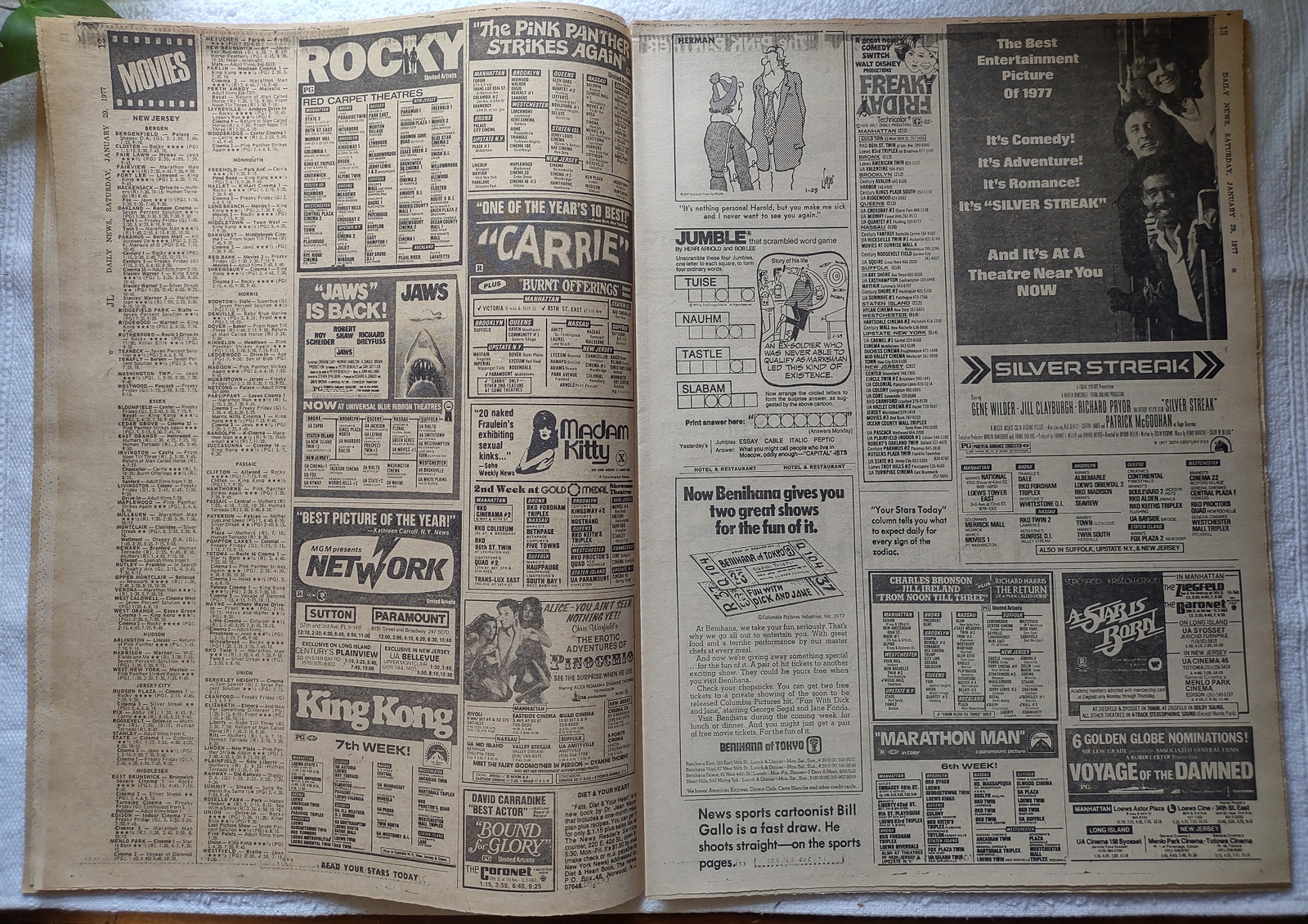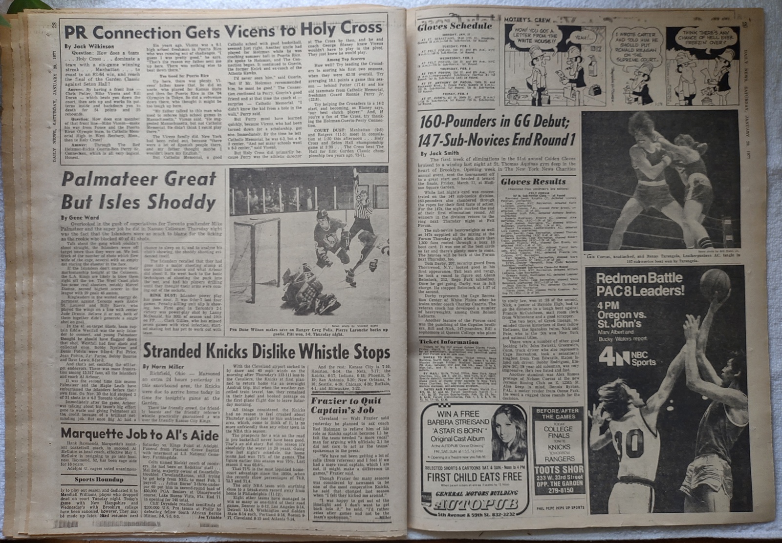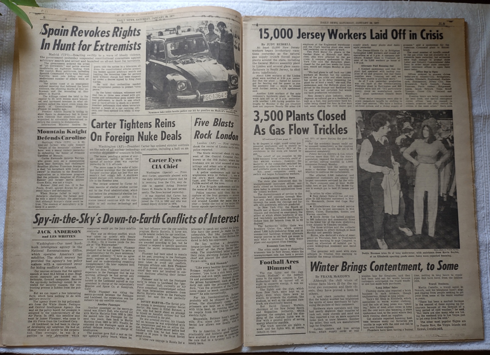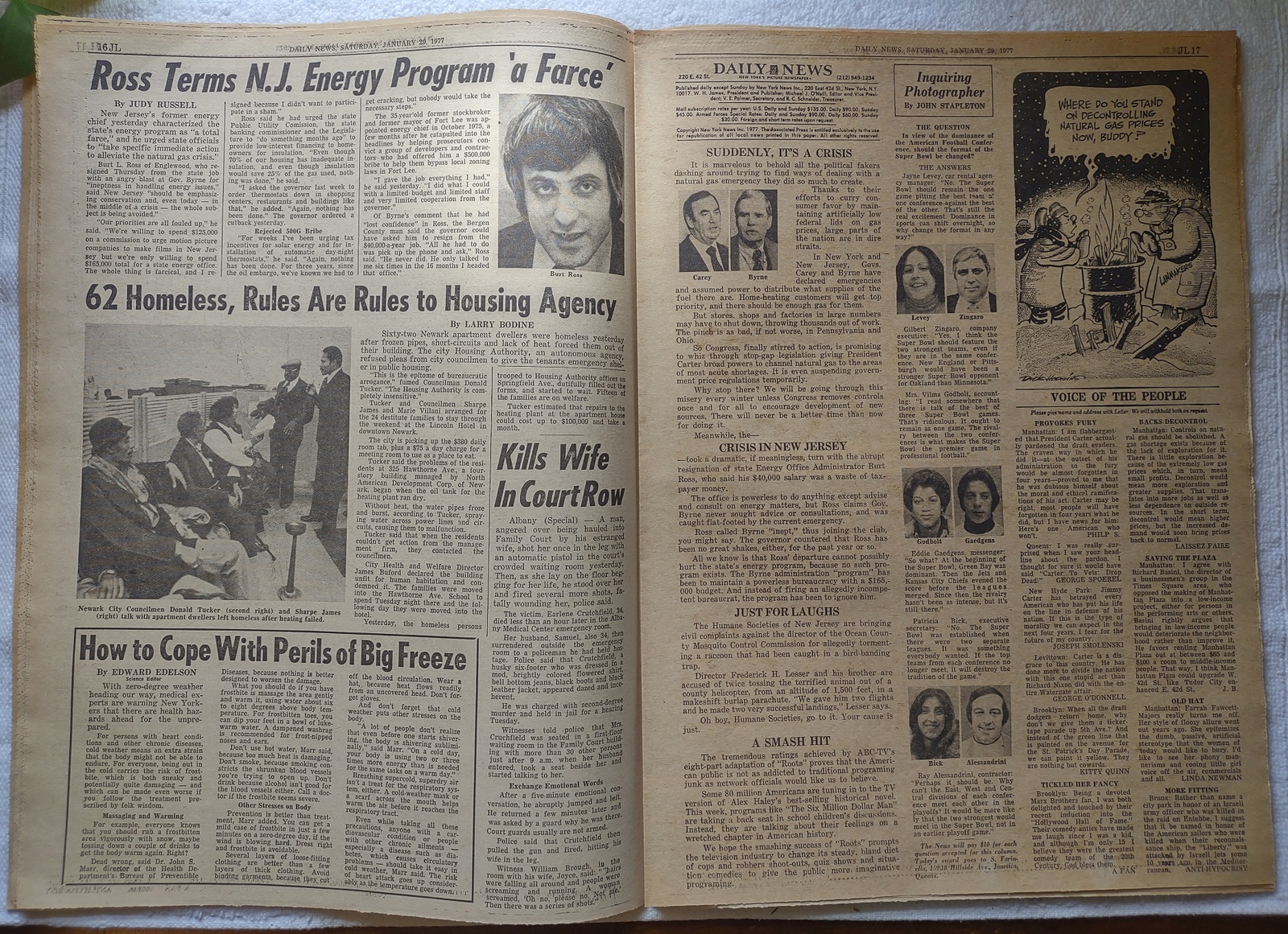 New York Daily News (New Jersey Edition) – Saturday, January 29, 1977. What you see in the pictures is what you get. This is a very interesting old newspaper which features as the front page story: Gas Cut Off to 3,500 Firms – 15,000 N.J. Workers Laid Off and ‘TV Star Prinze Near Death – Suicide Note: ‘I Can’t Take It Anymore’