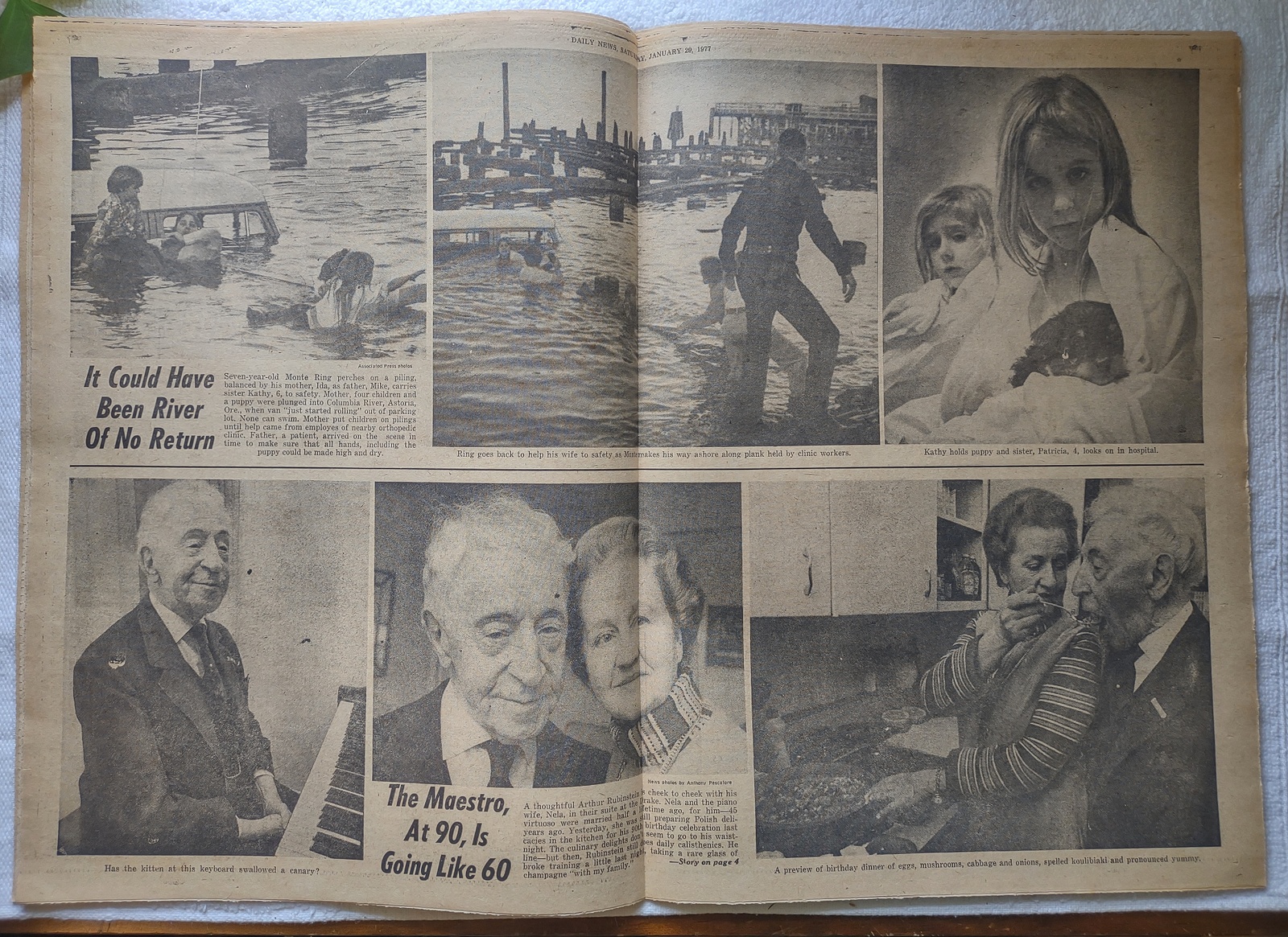 - The centerfold has pictures of Arthur and Nela Rubinstein as well as pictures of a rescue of a mother, four children and a puppy when their van rolled into the Columbia River in Astoria, OR