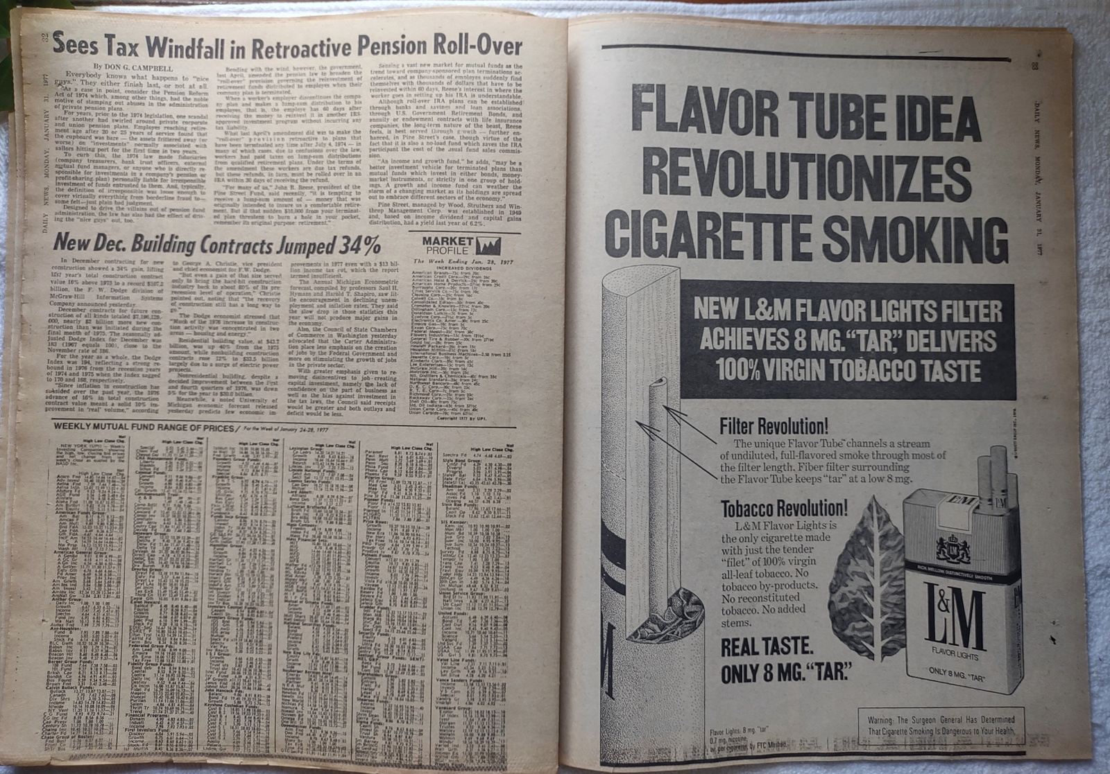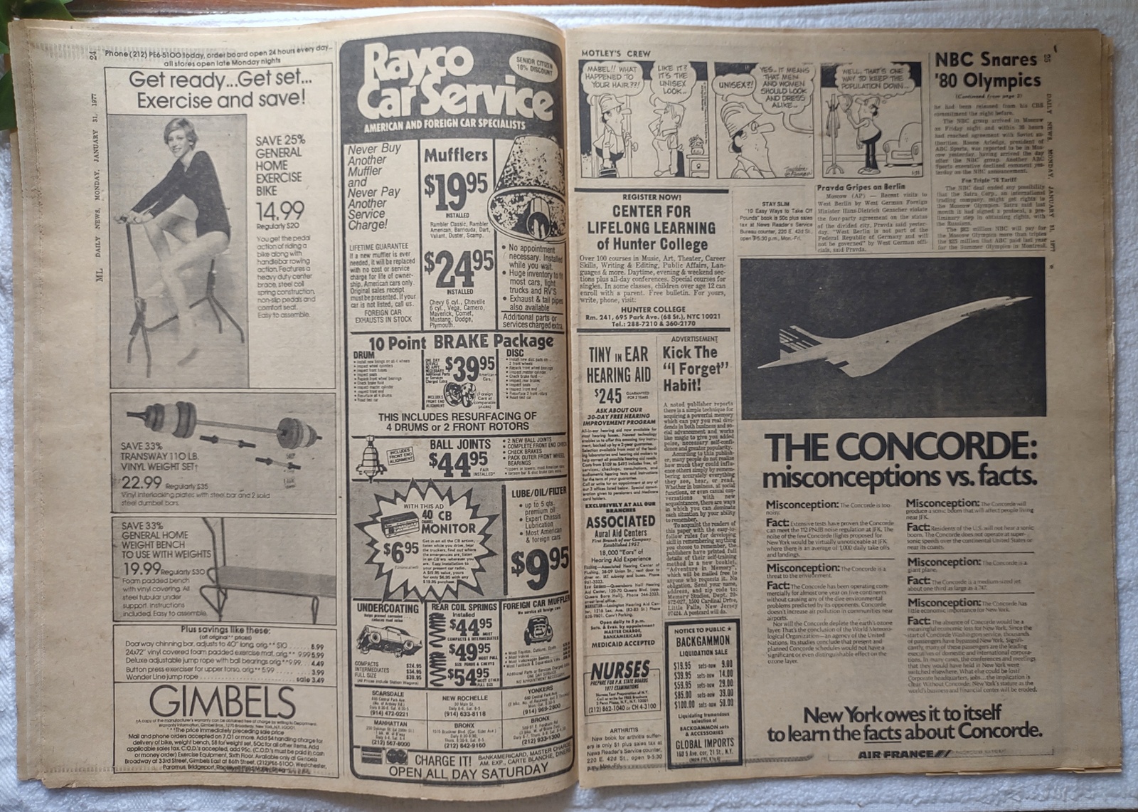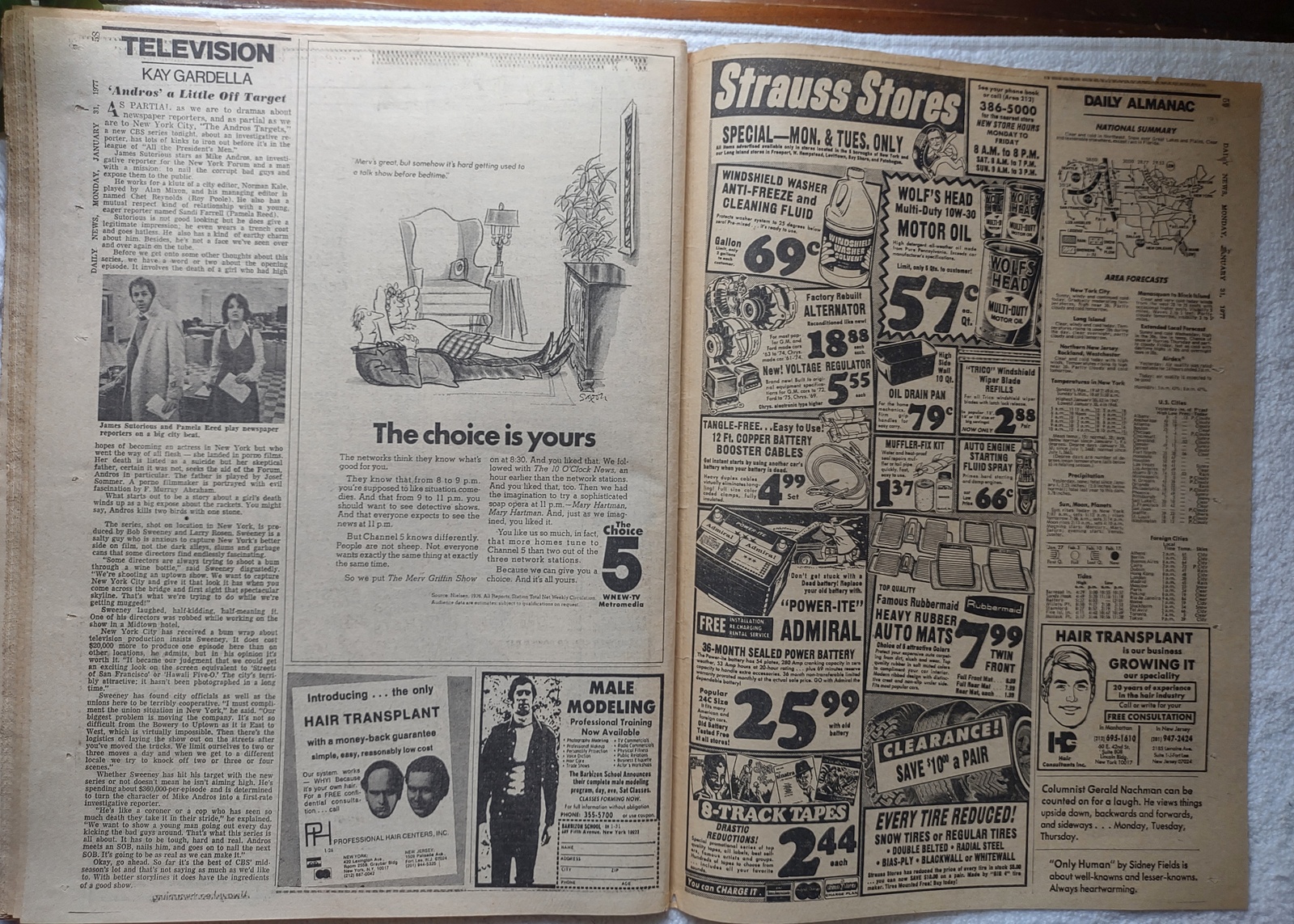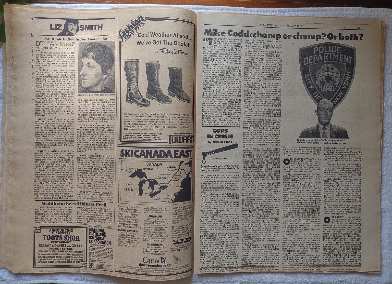 New York Daily News – New Jersey Edition – Monday, January 31, 1977. What you see in the pictures is what you get. This is a very interesting old newspaper which features as the front page story: ‘Cold Ices Jobs, Cuts Store Hrs. 400,000 Face Layoffs in N.J.