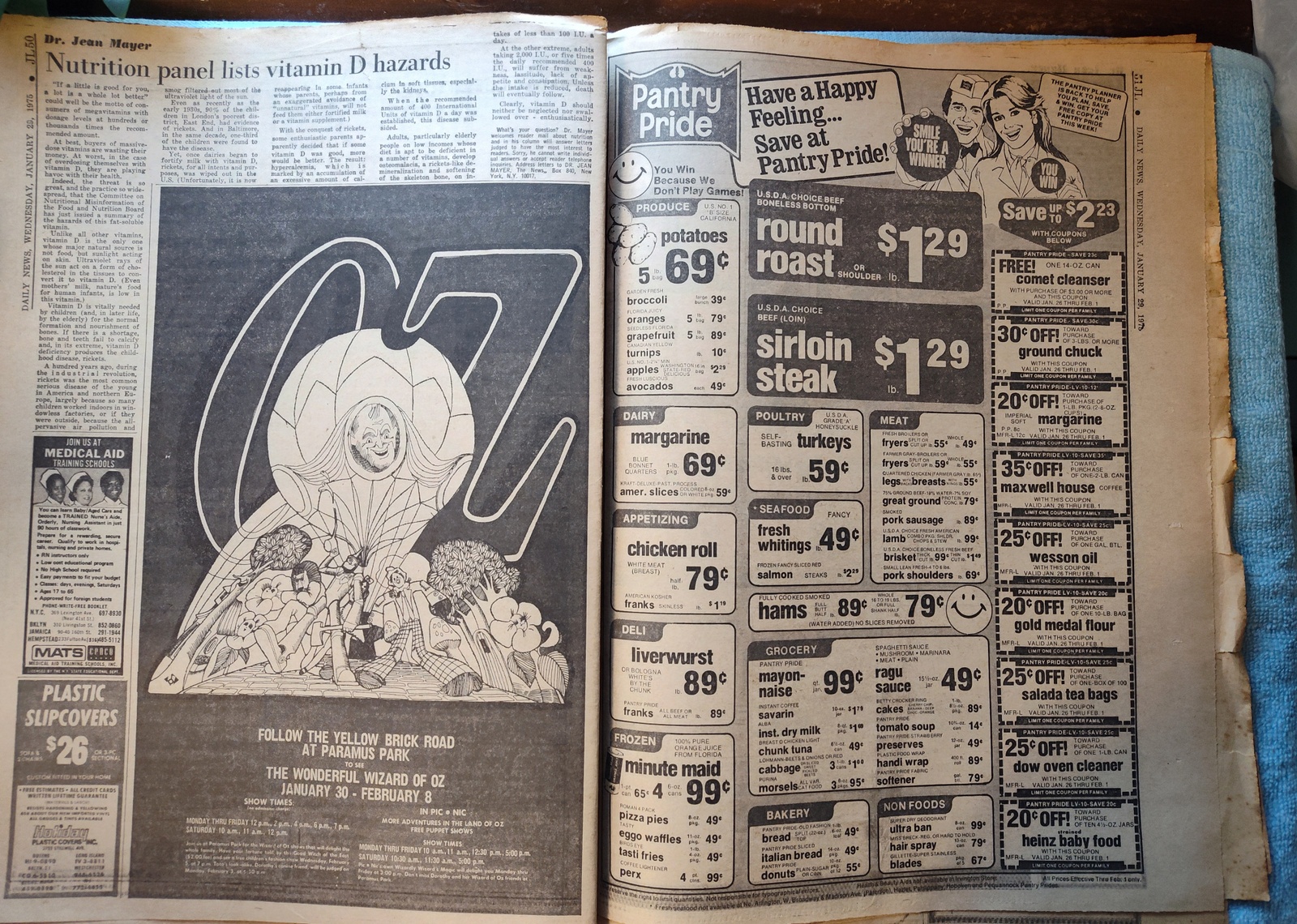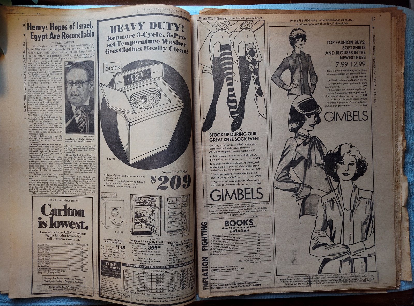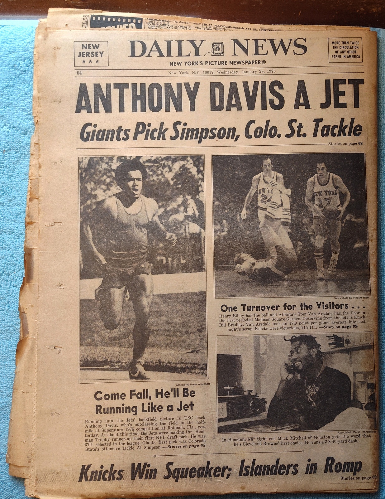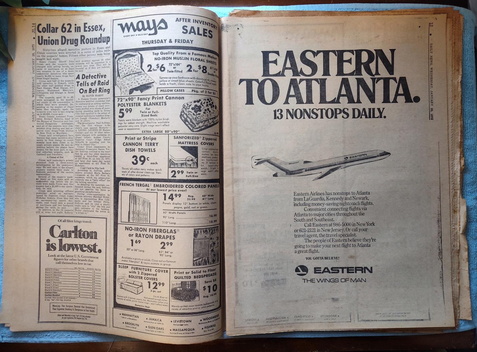 New York Daily News (New Jersey Edition) – Wednesday, January 29, 1975. This old newspaper features on the front page a picture of Victoria Fyodorova – a Russian actress who wants to meet her father, Retired Navy Rear Admiral Jackson R. Tate – alleged to have been fathered on VE day. The headline is: ‘Ford Asks 522M In Indo War Aid’ and ‘Indict Kallinger in Sex Assault’ What you see in the pictures is what you get.