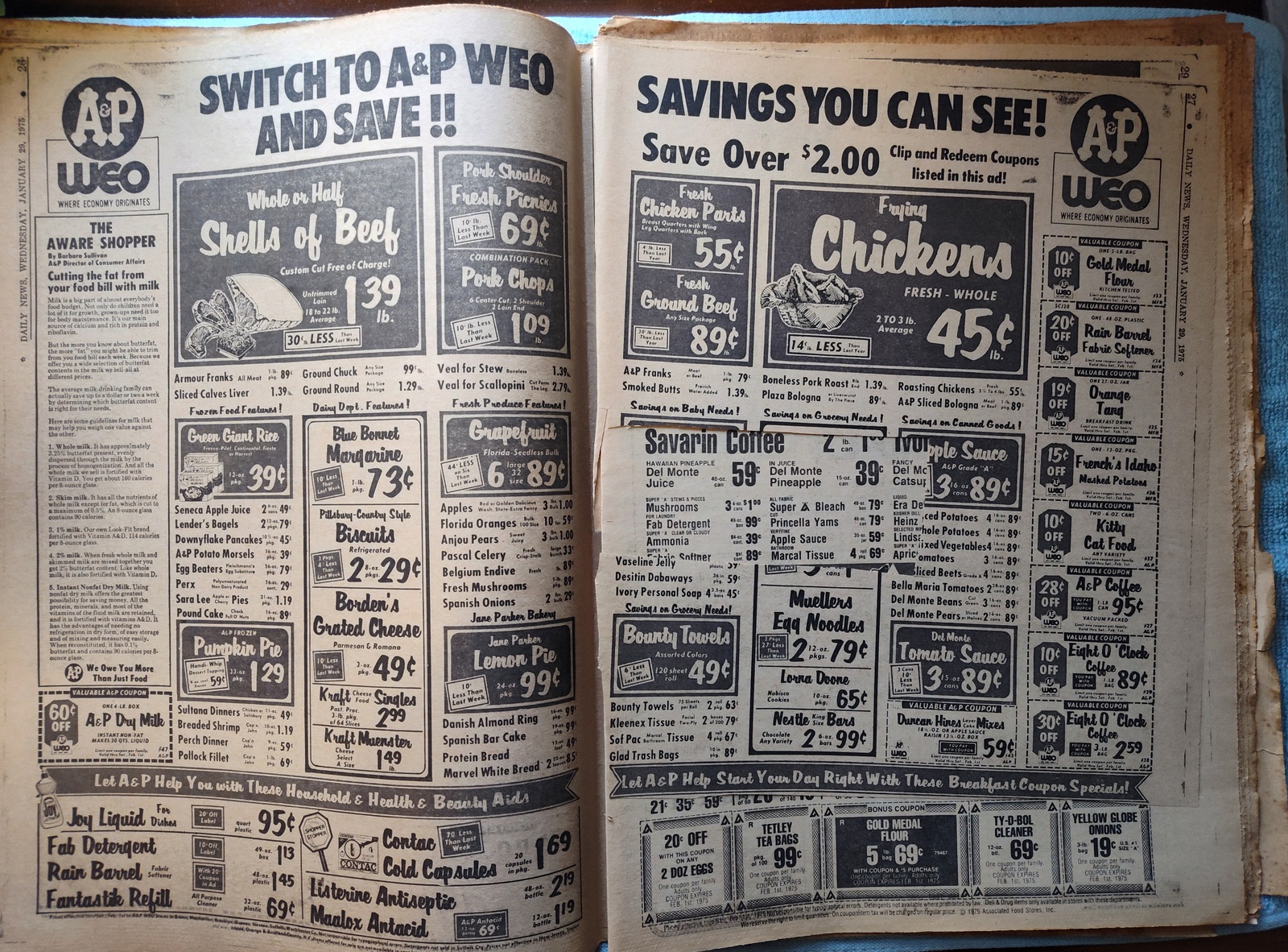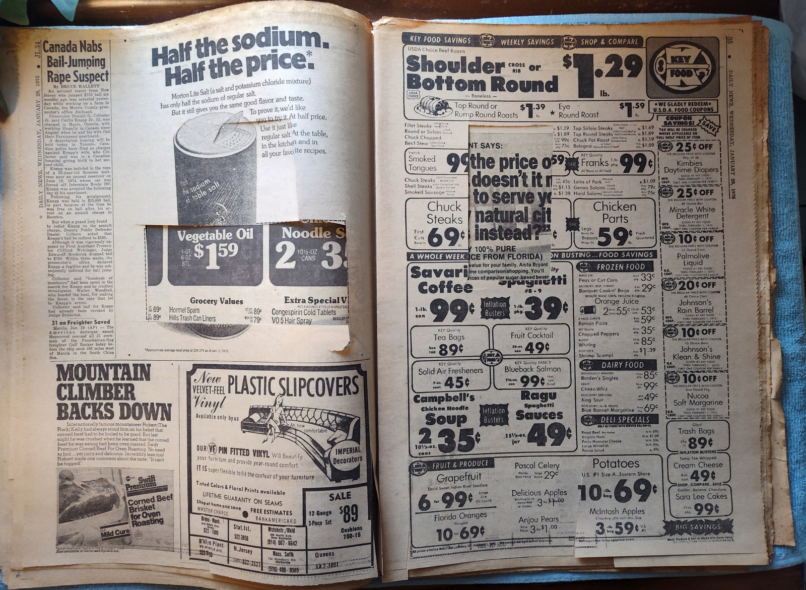 Good readable used condition for a pushing 50 year old newspaper! All 84 pages are included except for pages 31/32 and lots of coupons have been clipped – please note the discoloration on the front and the wear / tears around the edges – LOOK AT THE PICTURES!