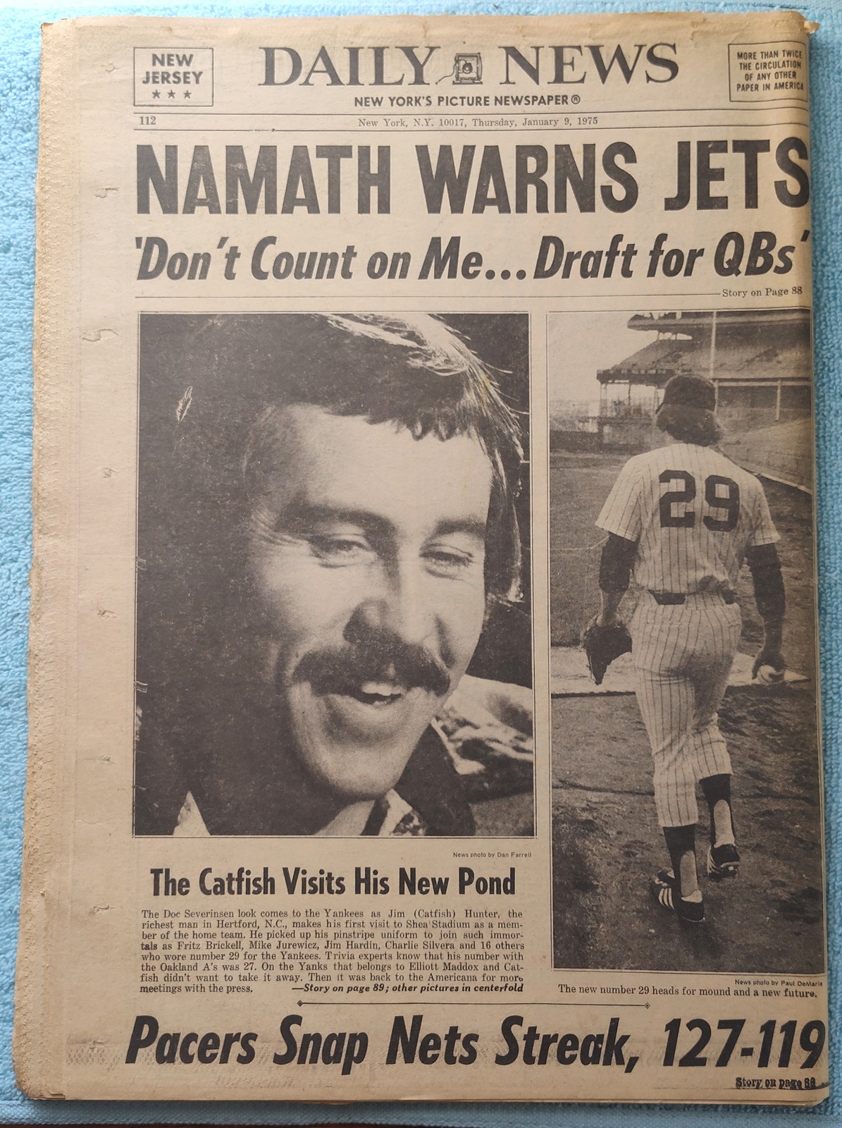 - The back page features pictures of Yankee pitcher Jim (Catfish) Hunter in his new pond – Shea Stadium.