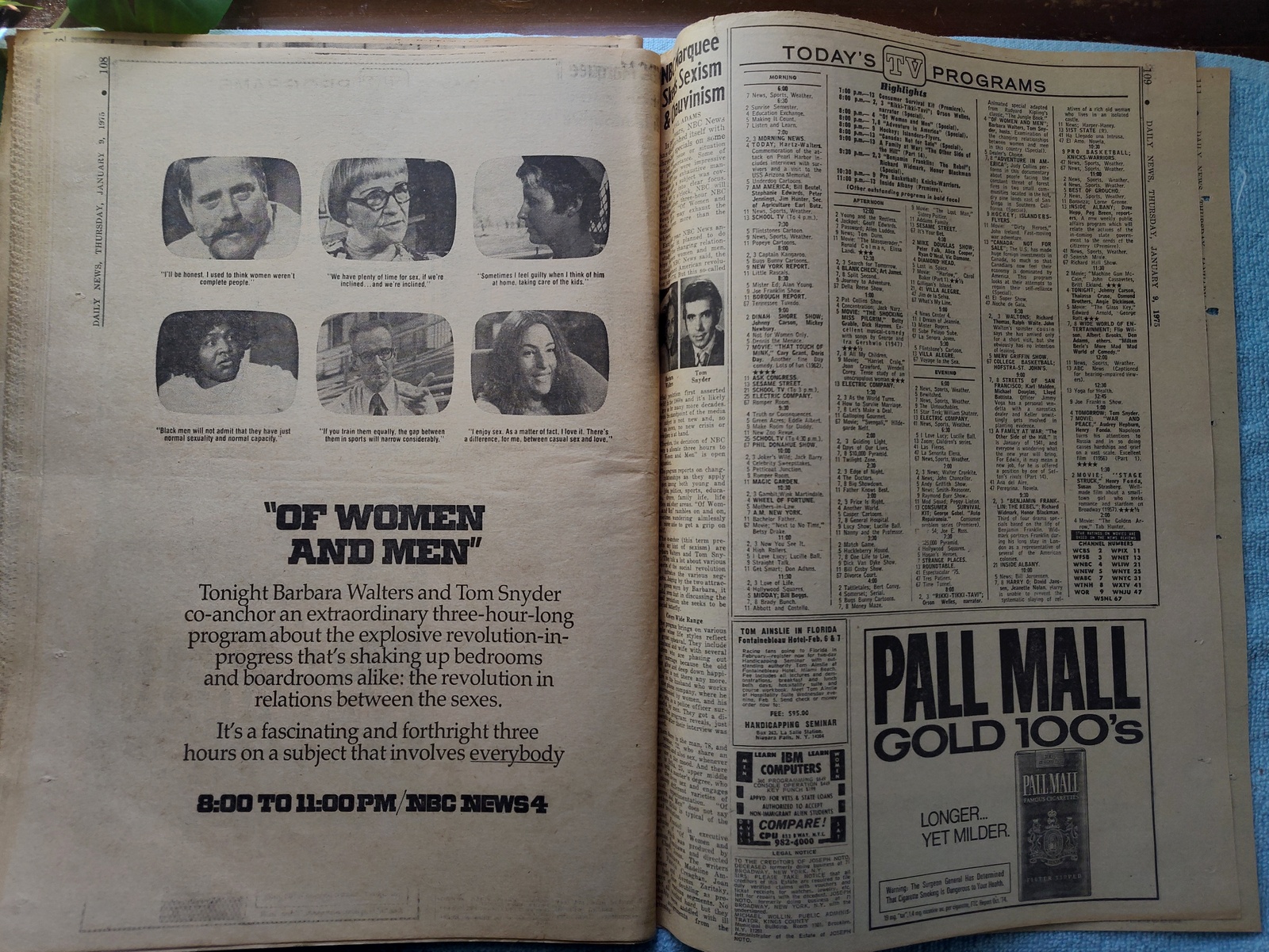 - Don’t miss “Of Women and Men” on NBC News 4 – 8-11PM with Barbara Walters and Tom Snyder