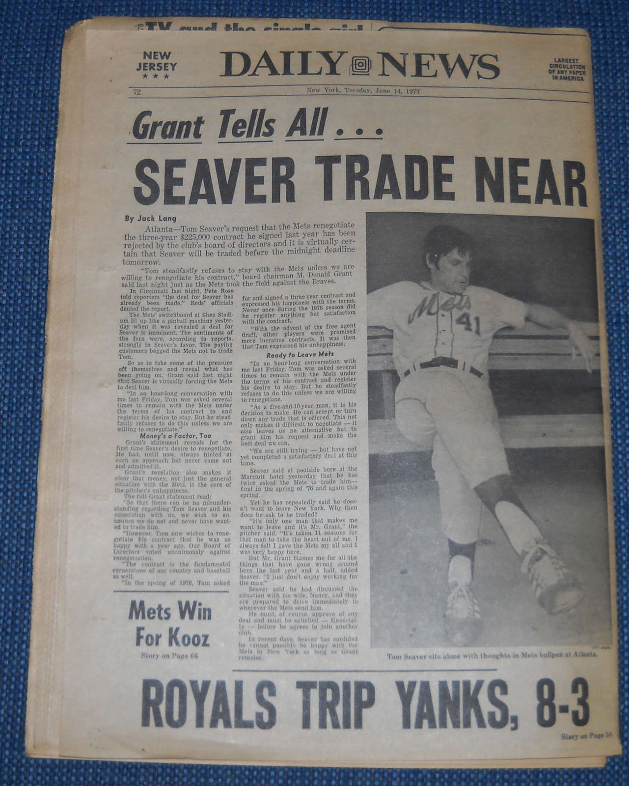 - The sports section covers “Grant Tells All. . .Seaver Trade Near” Tom Seaver unable to reconcile with the Mets