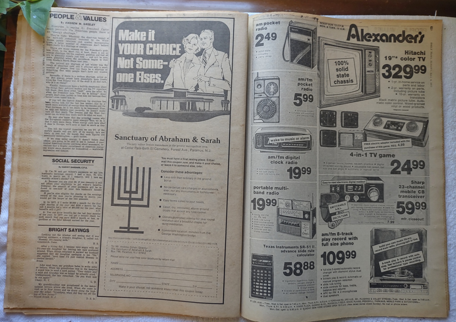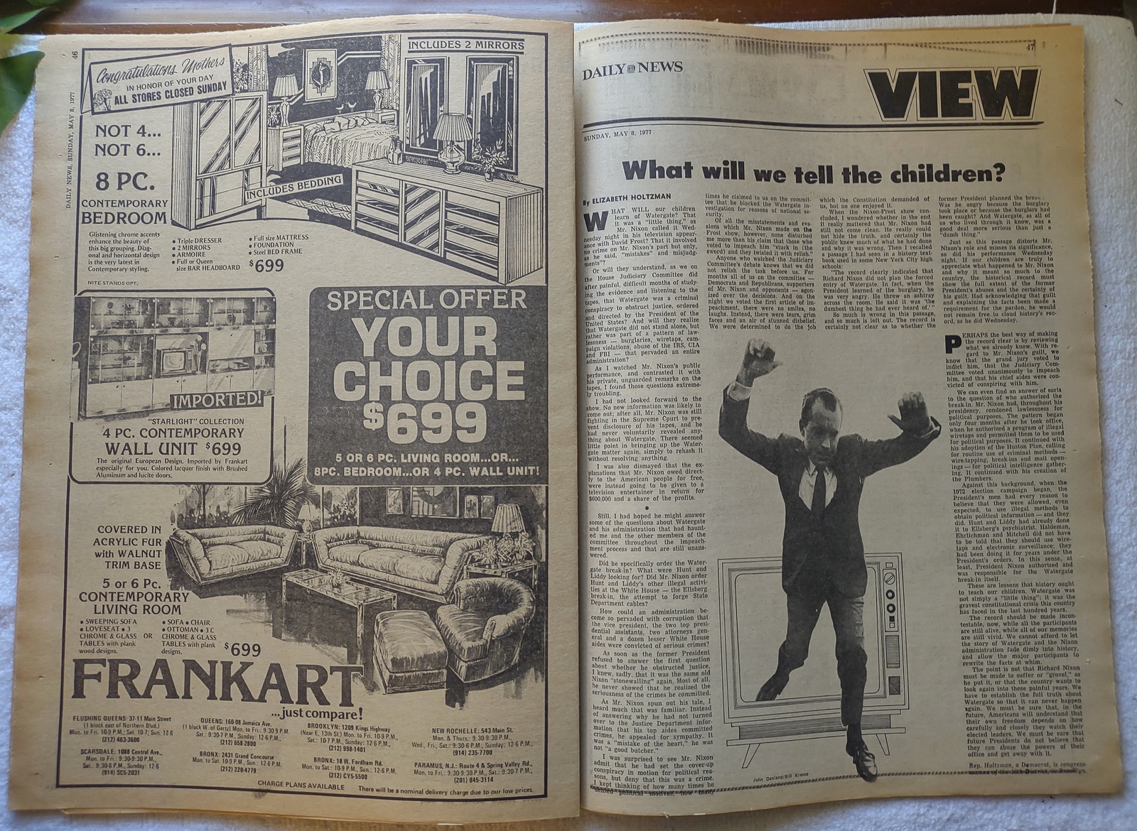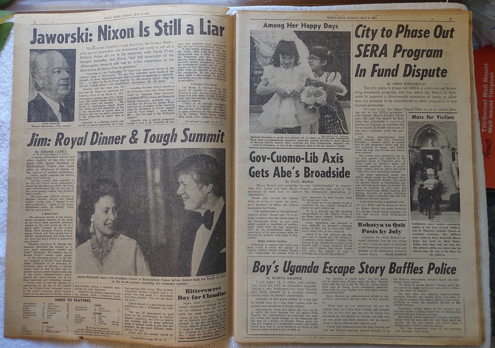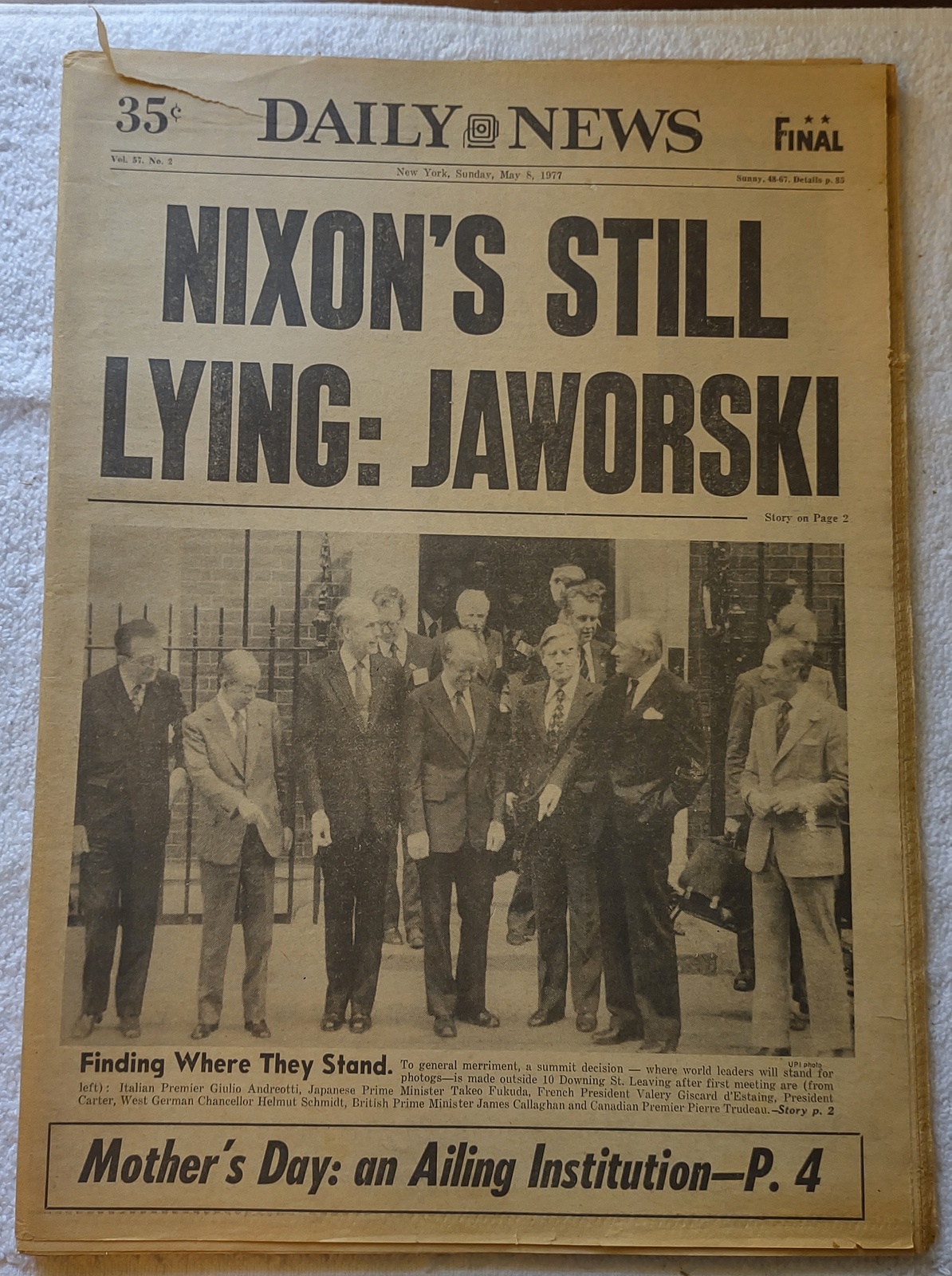 New York Daily News – Sunday, May 8, 1977. What you see in the pictures is what you get. This is a very interesting old newspaper which features as the front page story: Nixon’s Still Lying: Jaworski