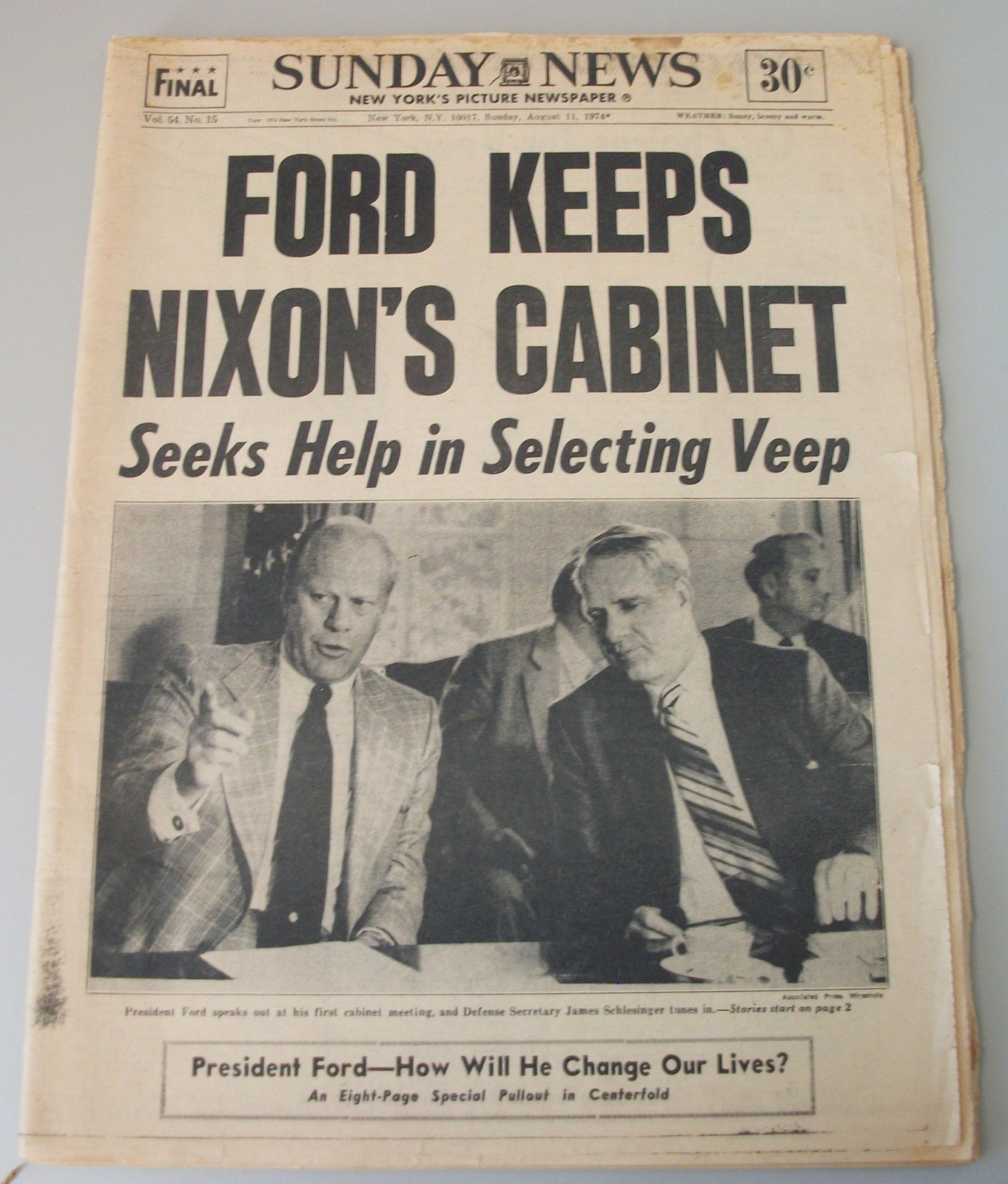 - Ford Keeps Nixon’s Cabinet – Seeks Help in Selecting Veep